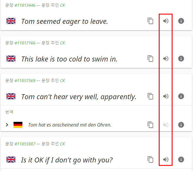 이 링크를 클릭하면 문장별로 음원을 재생할 수 있는 페이지로 넘어갑니다. 이곳에서 위에 설명드린 듣고 따라 하는 연습을 하면 됩니다.