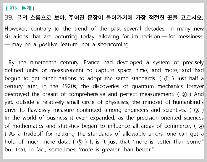2023년 11월 고등학교 2학년 11월 모의고사 39번 문장 넣기 문제에서 '양자 역학'과 관련된 독해 지문이 출제되었습니다.
