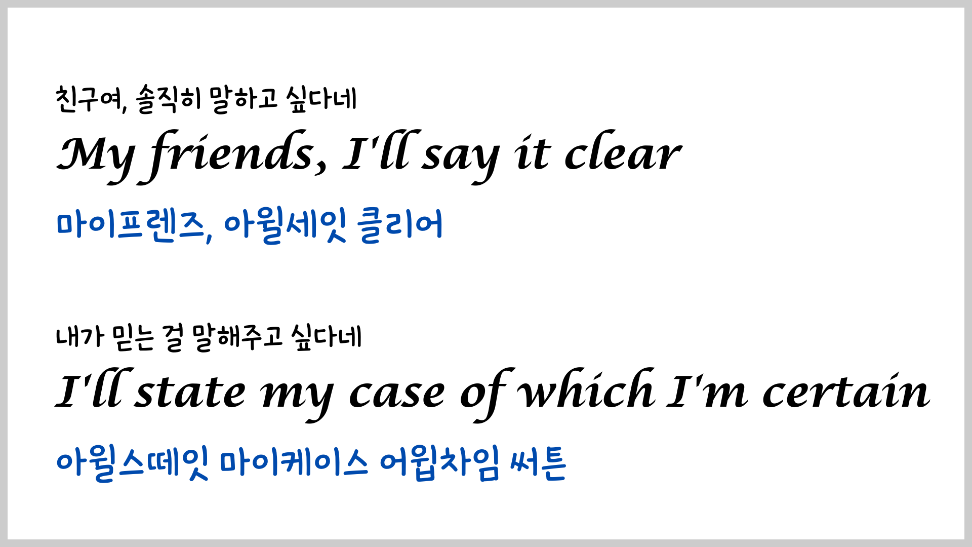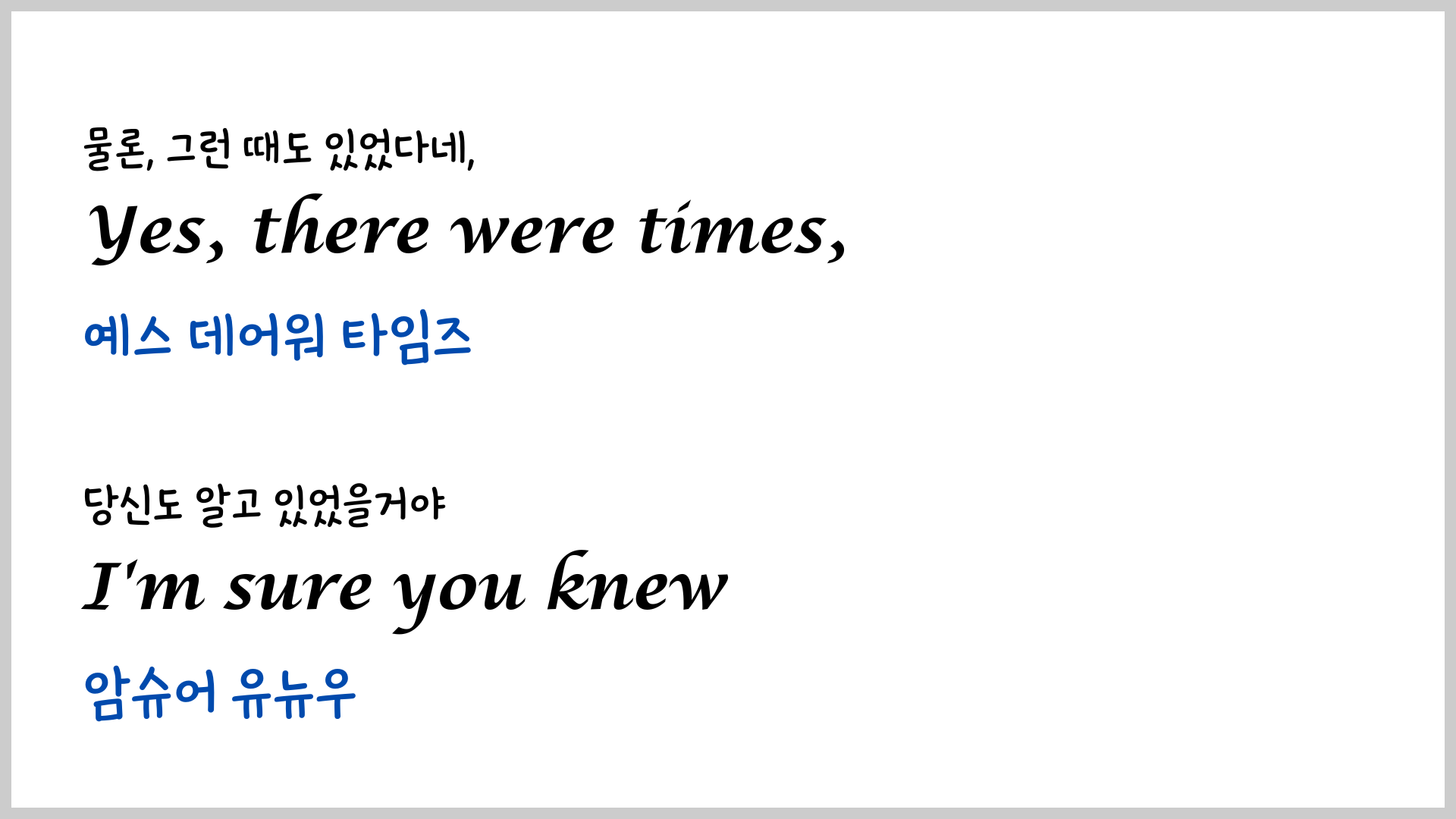 오늘은 당시에 하지 못했던 우리말 발음을 넣은 영상을 만들어 보았습니다. 우리말 발음을 보면서 노래를 여러 번 듣다 보면 훨씬 잘 들리지 않을까 싶네요.