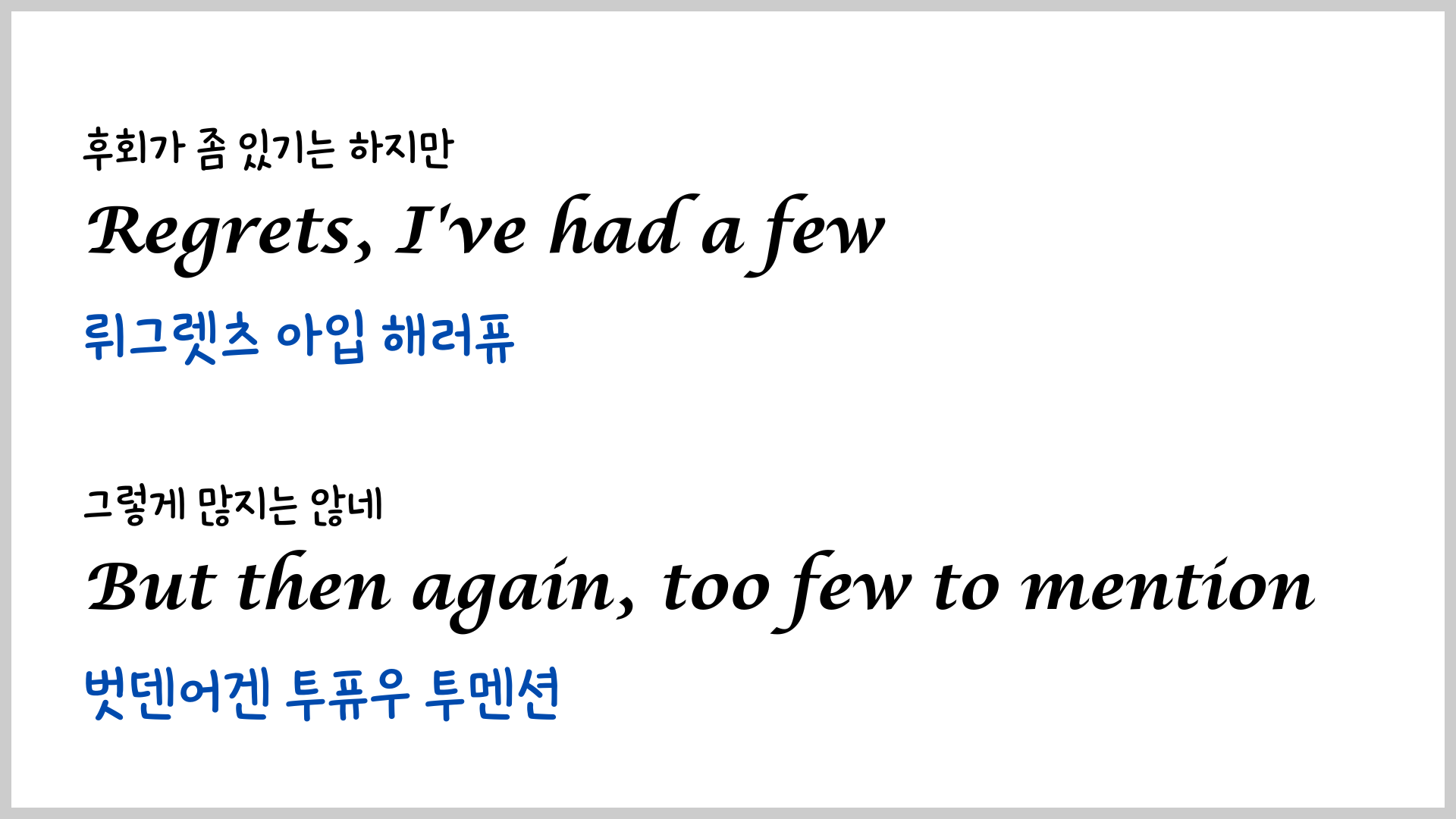 오래전에 팝송 My Way에 대한 가사와 해석, 그리고 유용한 영어 표현에 대한 포스팅을 한 적이 있습니다.