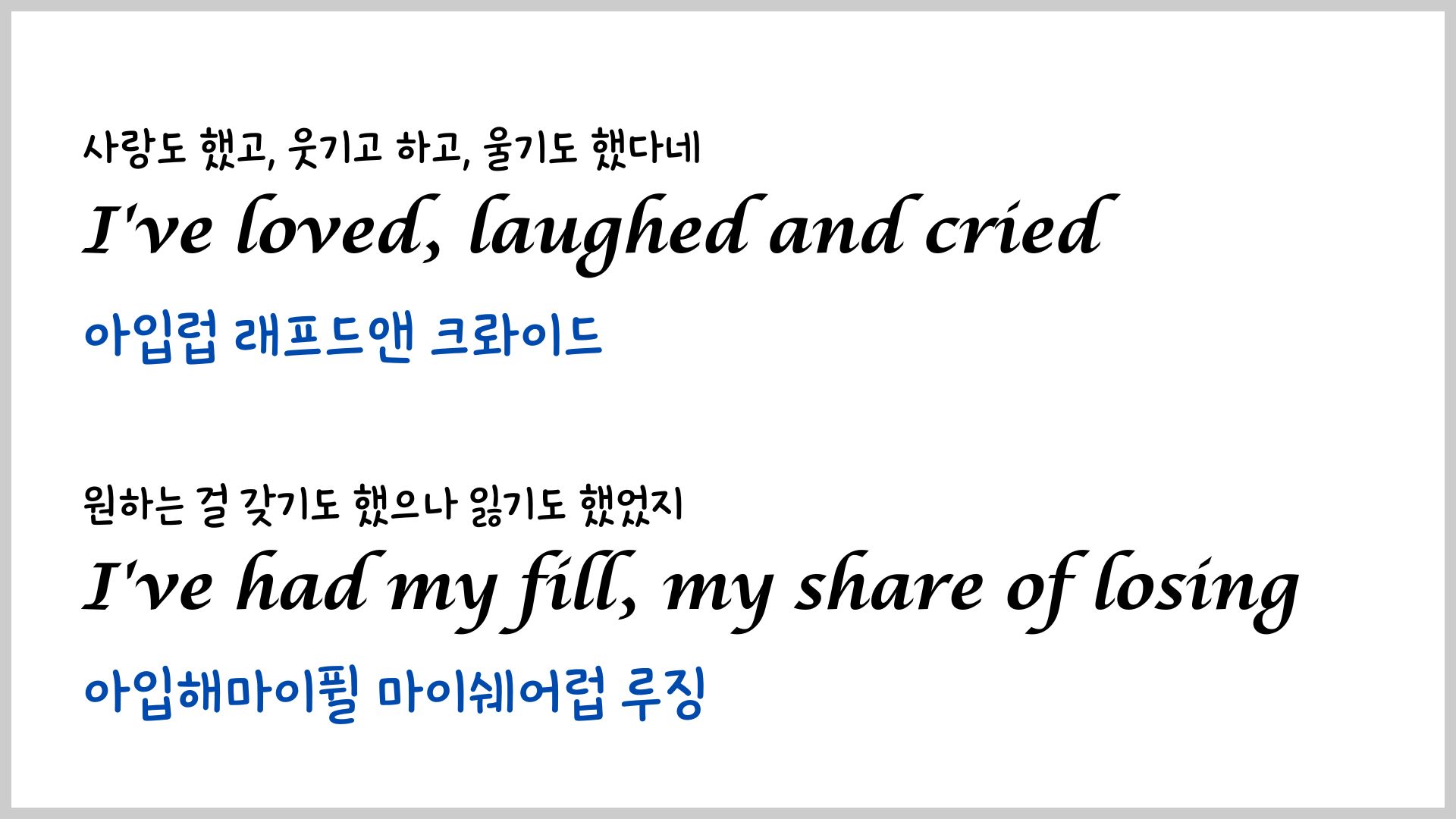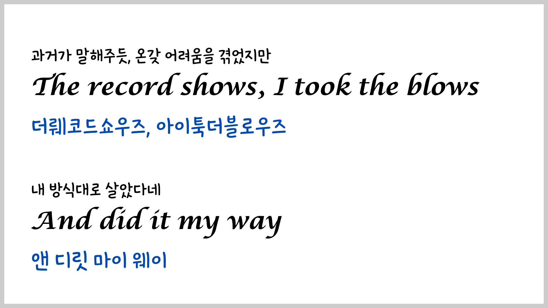 팝송 영어 - My Way 가사 해석 유용한 영어 표현