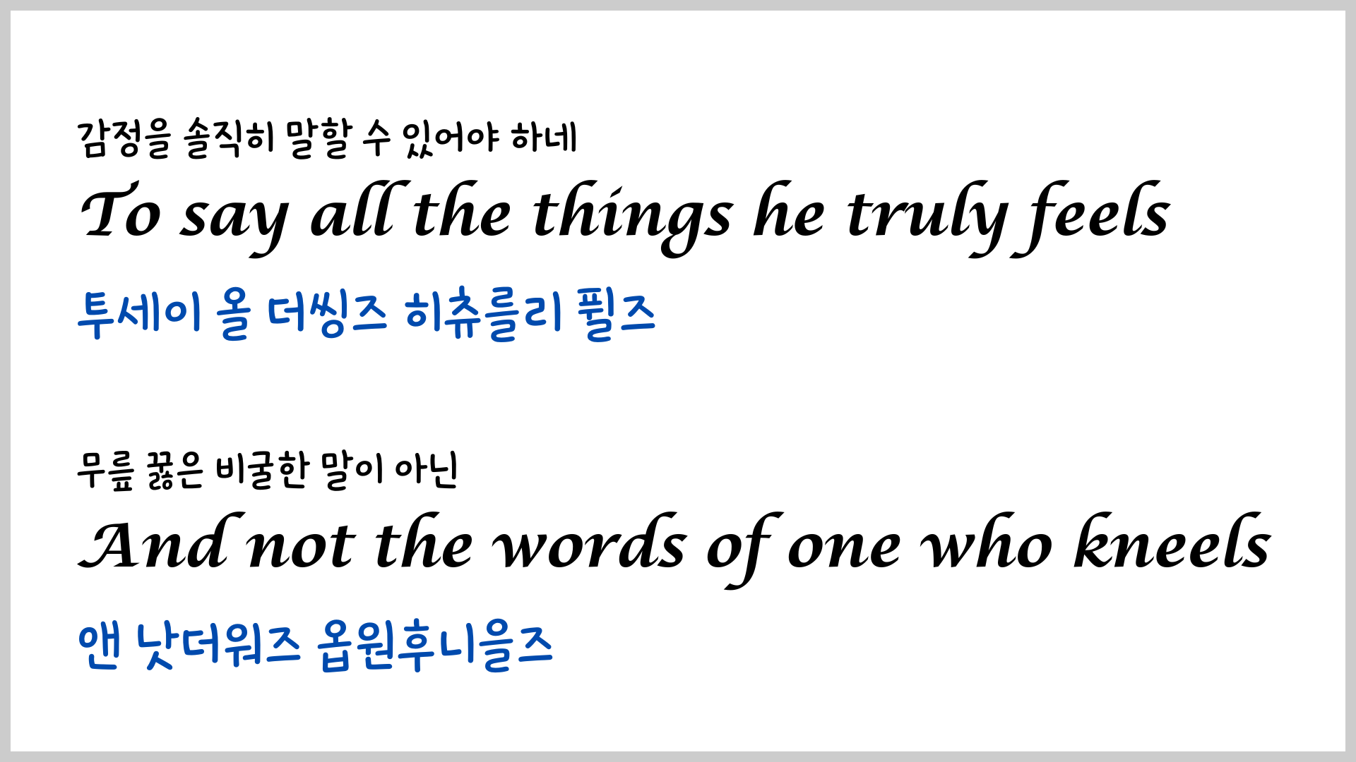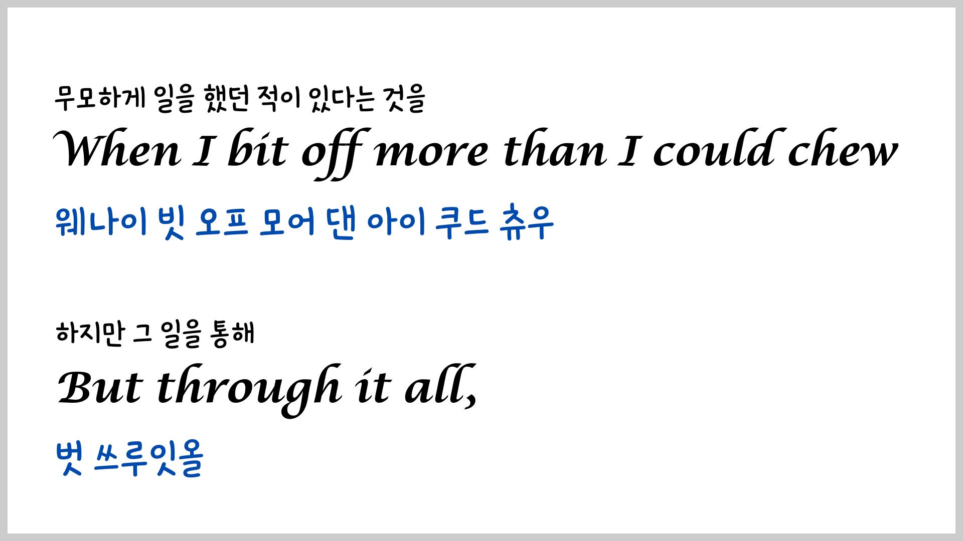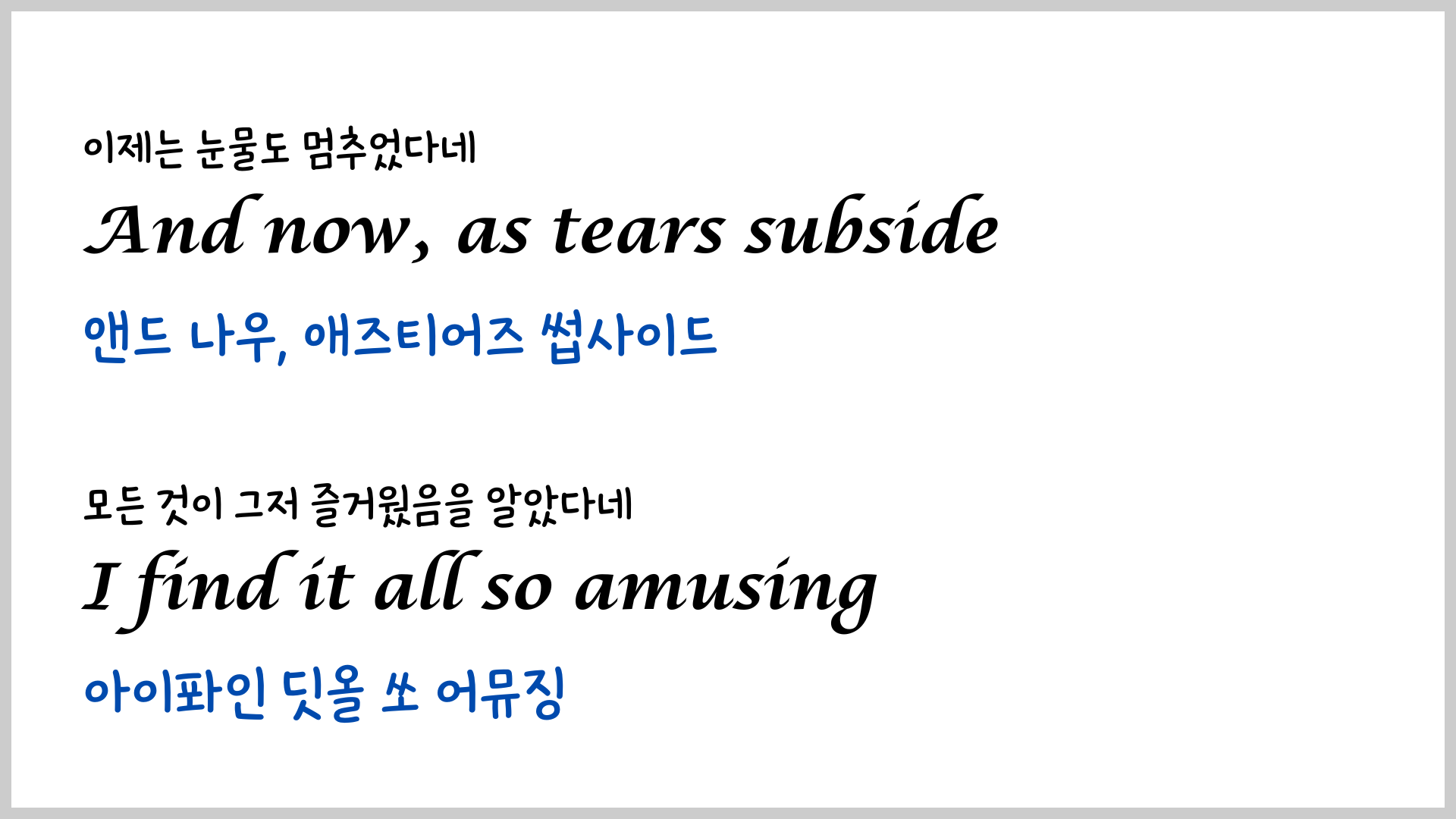 오늘은 당시에 하지 못했던 우리말 발음을 넣은 영상을 만들어 보았습니다. 우리말 발음을 보면서 노래를 여러 번 듣다 보면 훨씬 잘 들리지 않을까 싶네요.