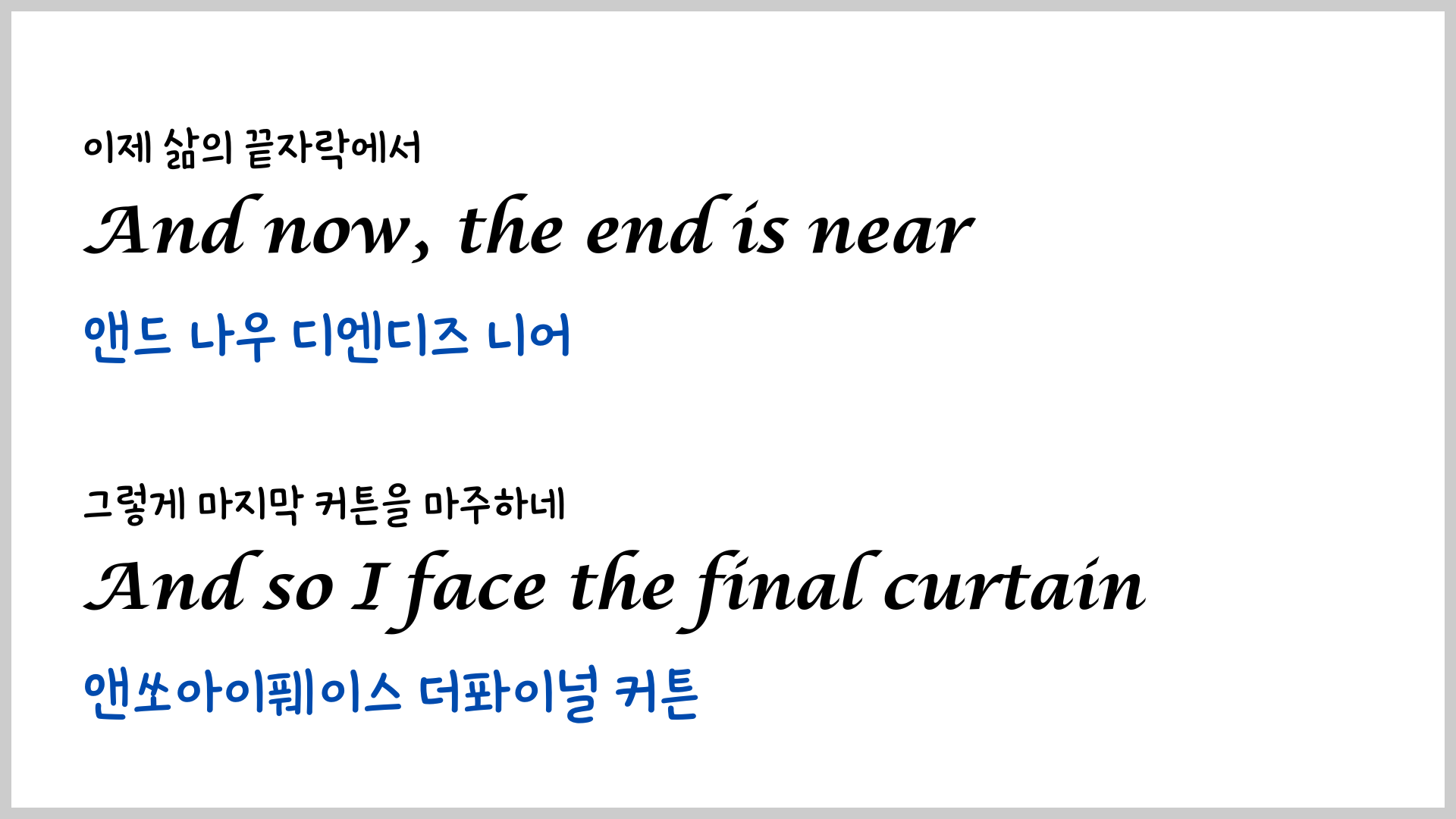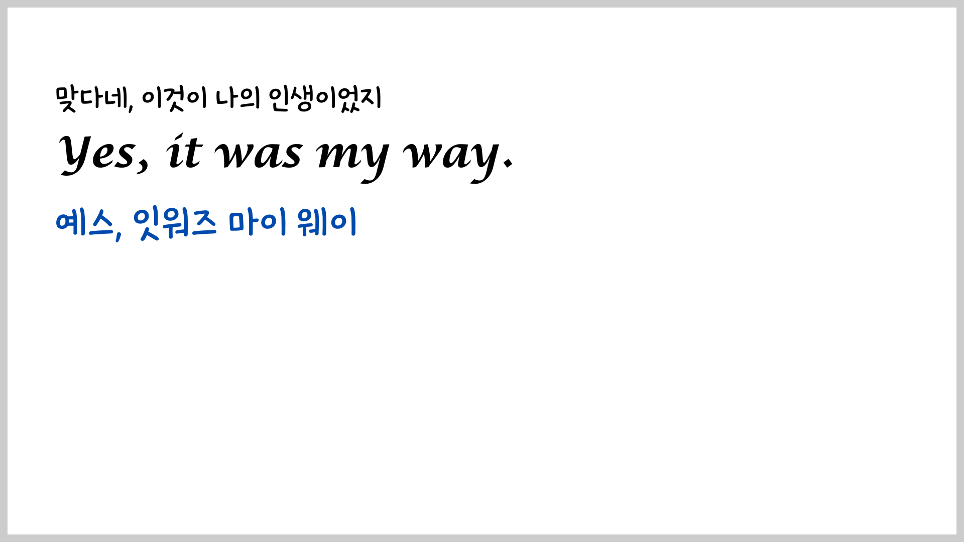 오래전에 팝송 My Way에 대한 가사와 해석, 그리고 유용한 영어 표현에 대한 포스팅을 한 적이 있습니다.