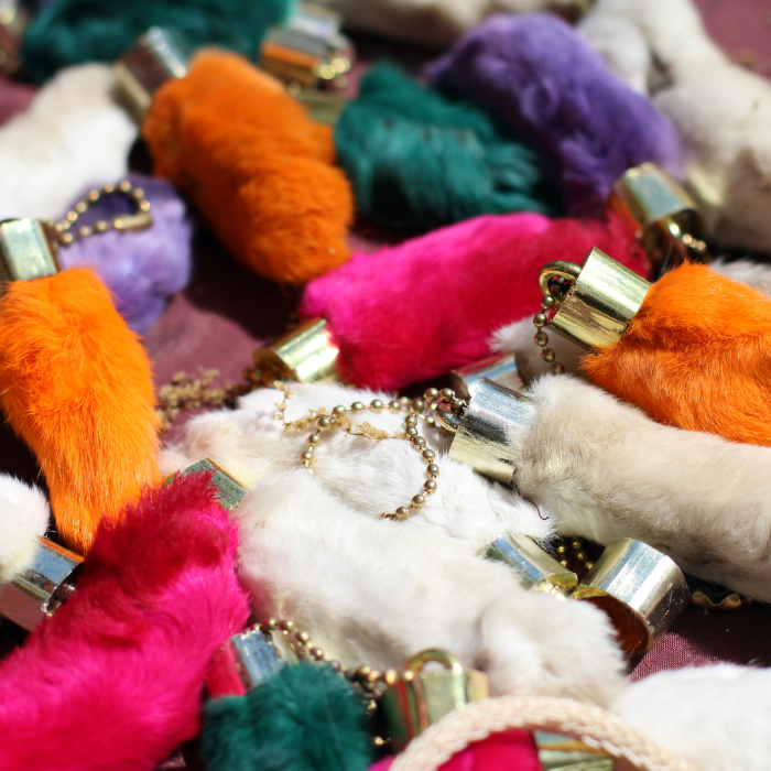 토끼 발은 고대 켈트족의 전통에서 유래된 미신으로, 토끼는 다산과 풍요를 상징했습니다. 특히 뒷다리의 발이 행운을 가져온다고 여겨졌습니다. 이 미신이 미국으로 건너오면서 많은 사람들이 토끼 발을 행운의 부적으로 간주하게 되었습니다. 조금 엽기적이기는 하지만 토끼 발을 키체인으로 가지고 다니는 경우도 있다고 합니다. 시험이나 면접 같은 중요한 일이 있을 때 이를 만지며 행운을 빌곤 합니다.