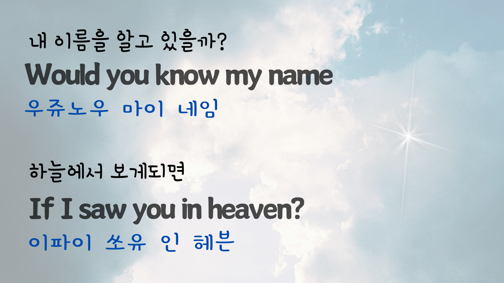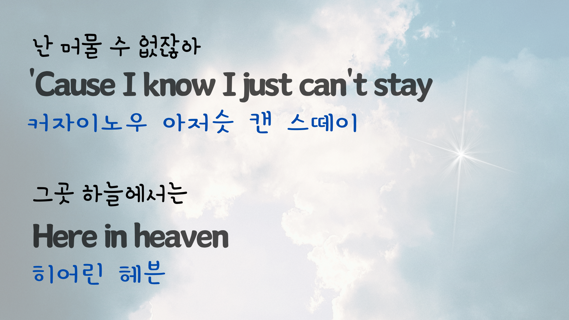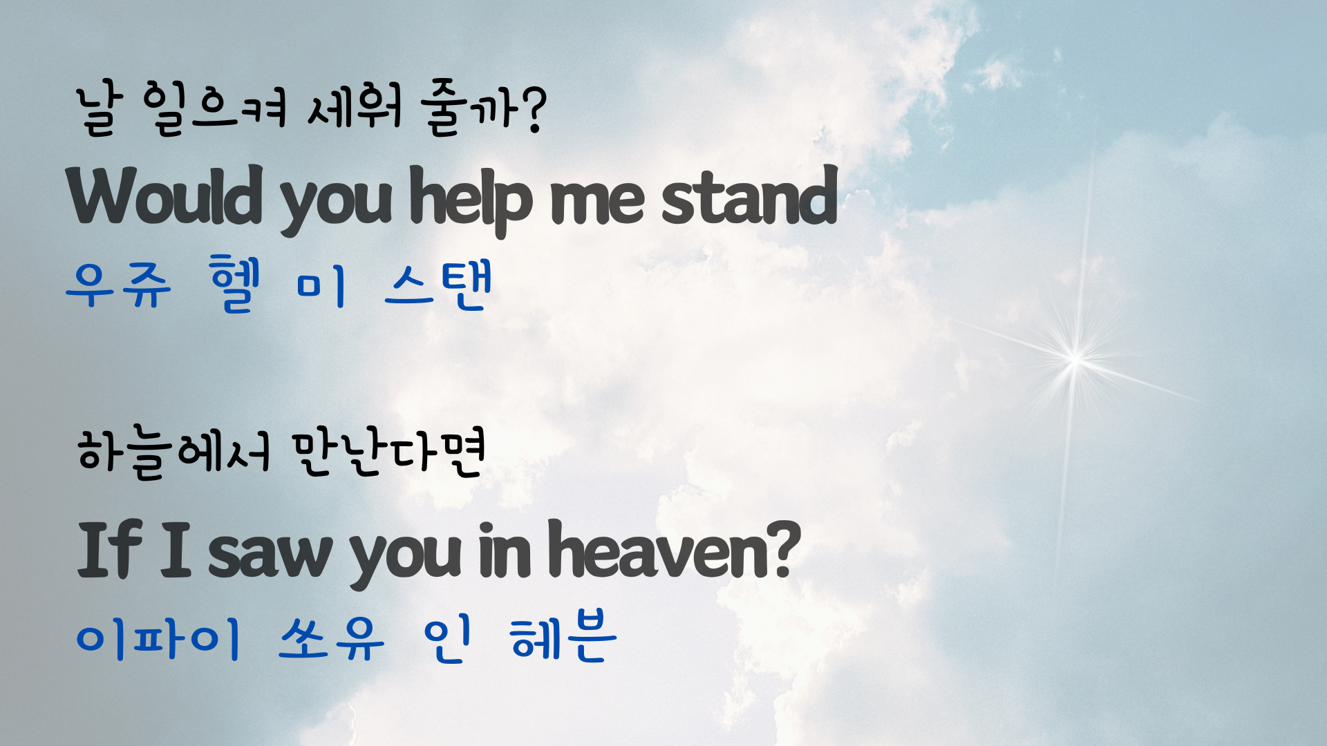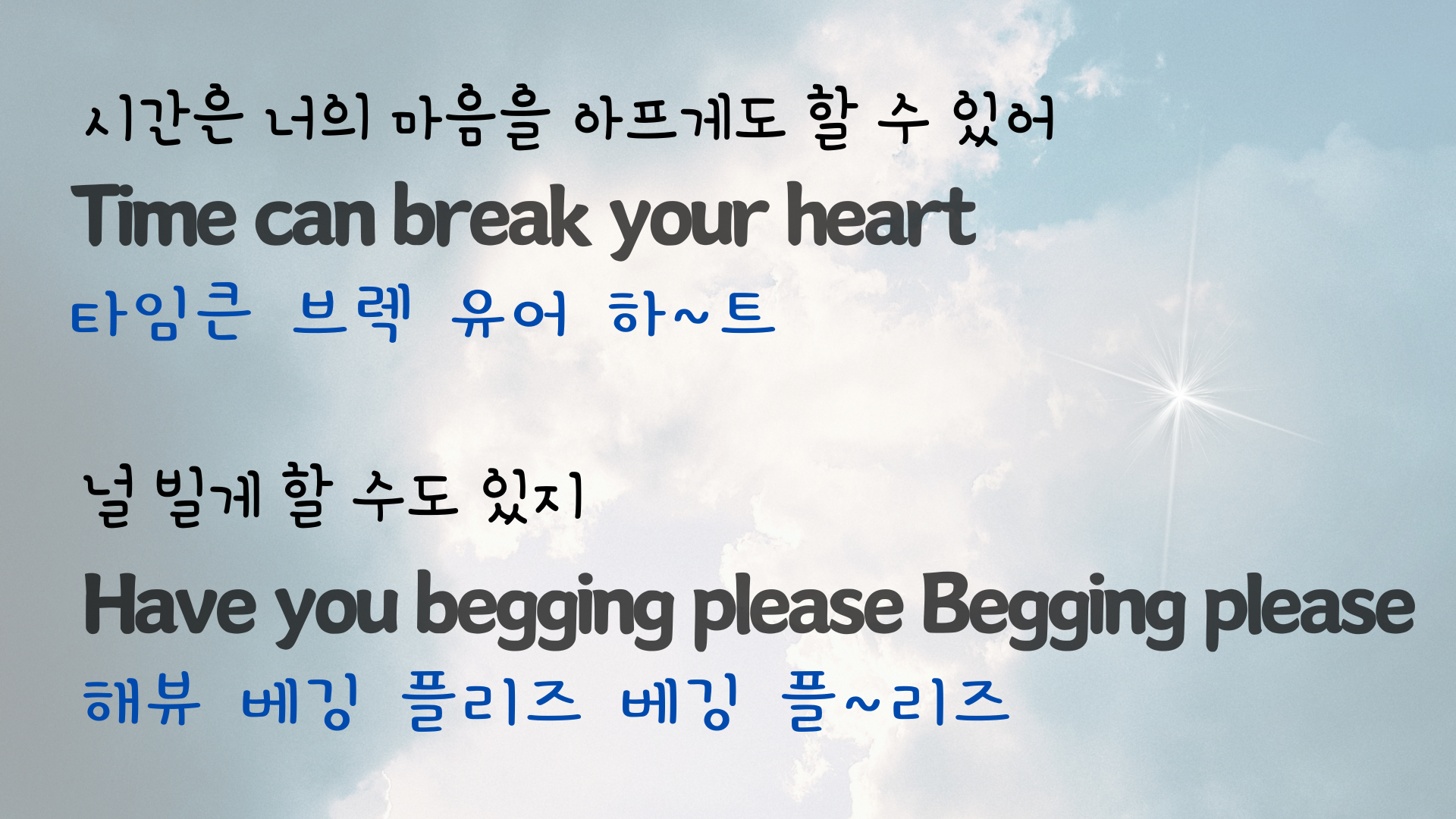 | 팝송 My Way 마스터하기 - 큰 글씨 우리말 발음 자막 (3) | 2024.06.06 |