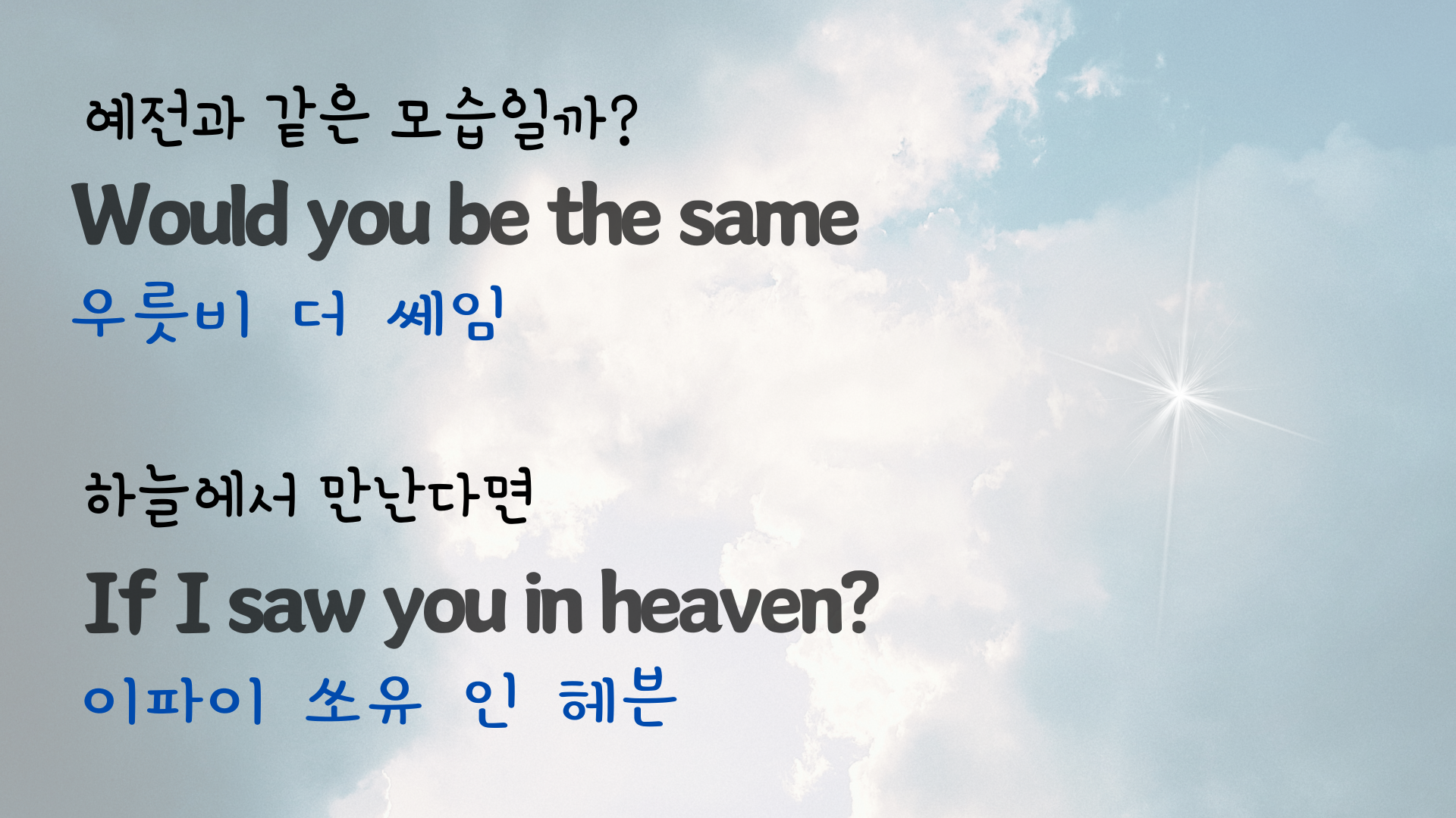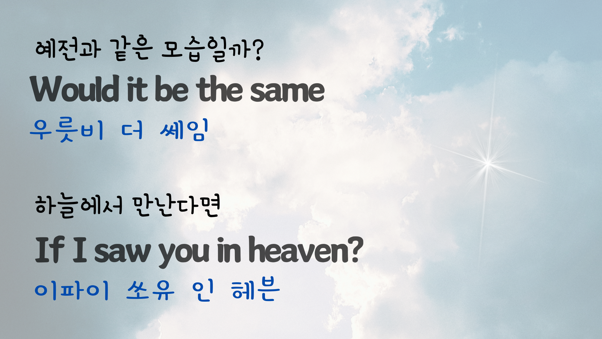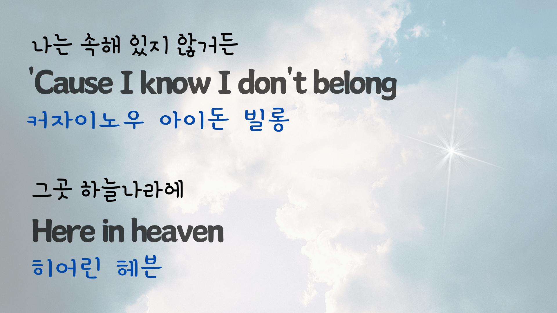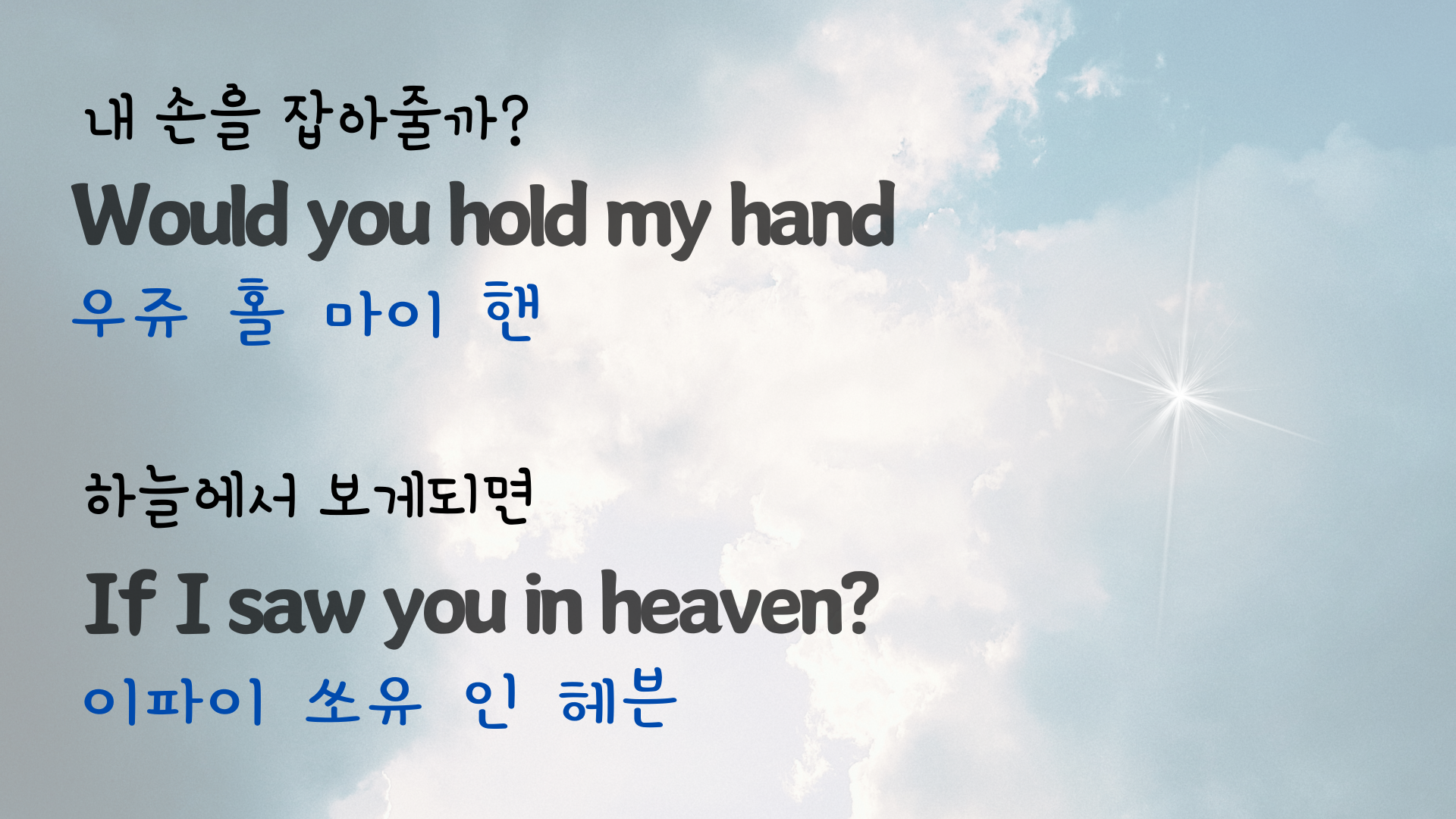 | 팝송 My Way 마스터하기 - 큰 글씨 우리말 발음 자막 (3) | 2024.06.06 |