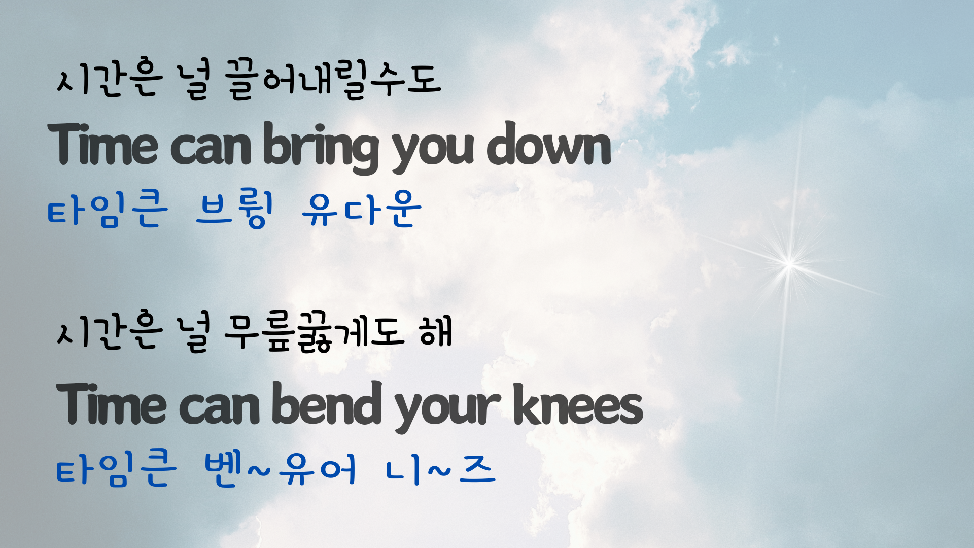 | 팝송 My Way 마스터하기 - 큰 글씨 우리말 발음 자막 (3) | 2024.06.06 |