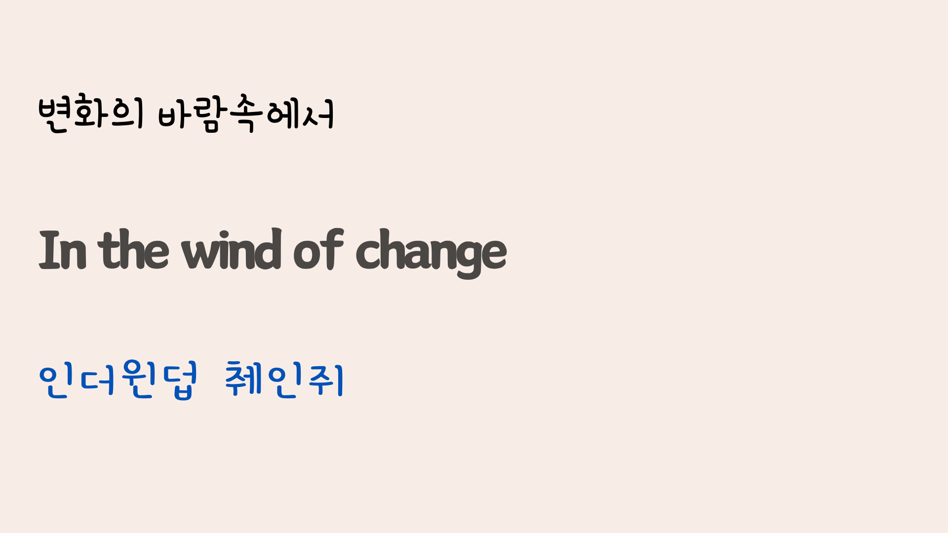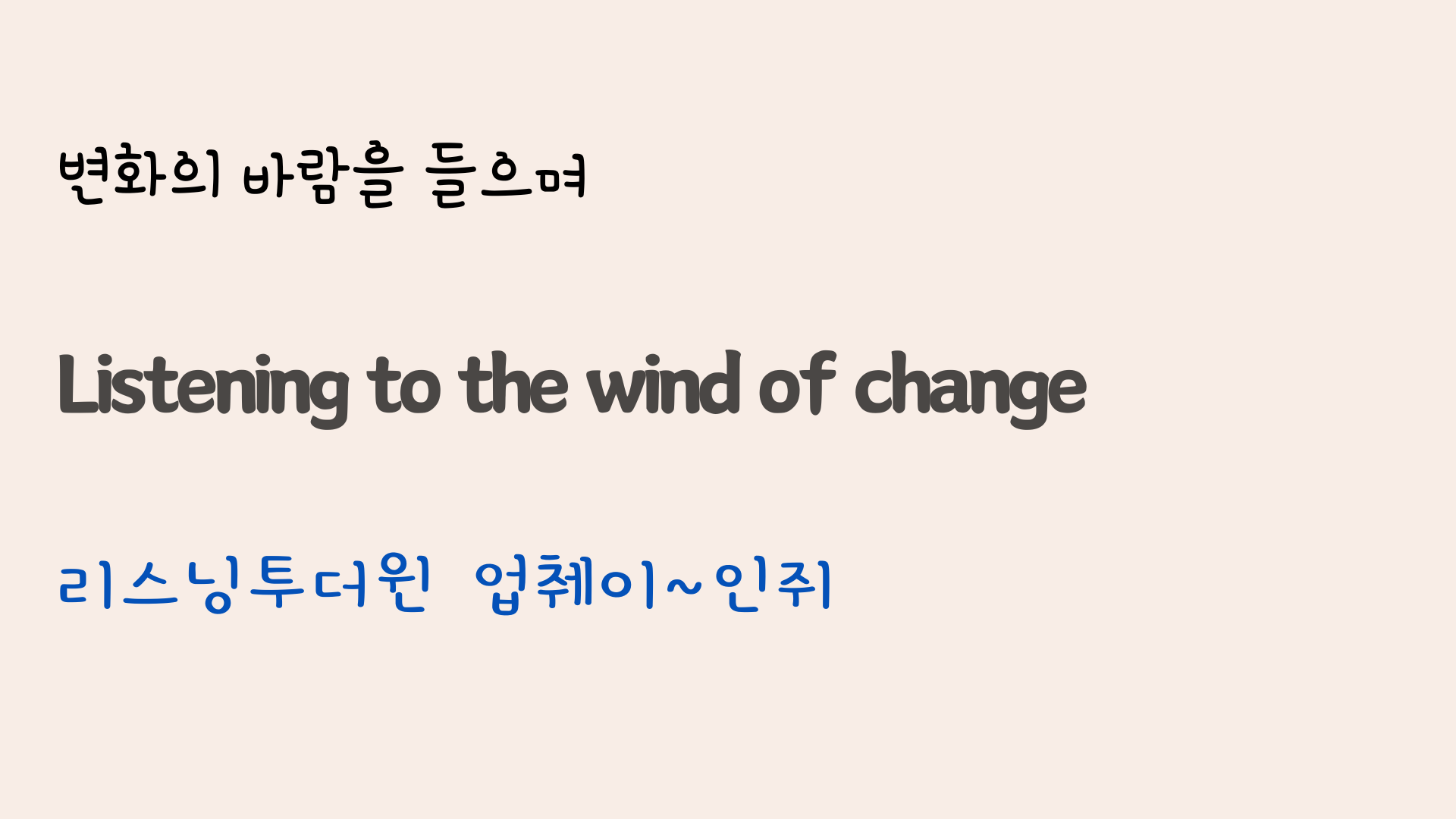사회주의 국가에 개방의 물결이 불던 때가 있었죠. Wind of Change는 그즈음에 나온 노래로서 도입부의 휘파람 소리가 무척 인상적인 팝송입니다. 오늘은 이 노래의 가사와 해석, 그리고 영어 발음에 대해 공부해 보도록 하겠습니다.