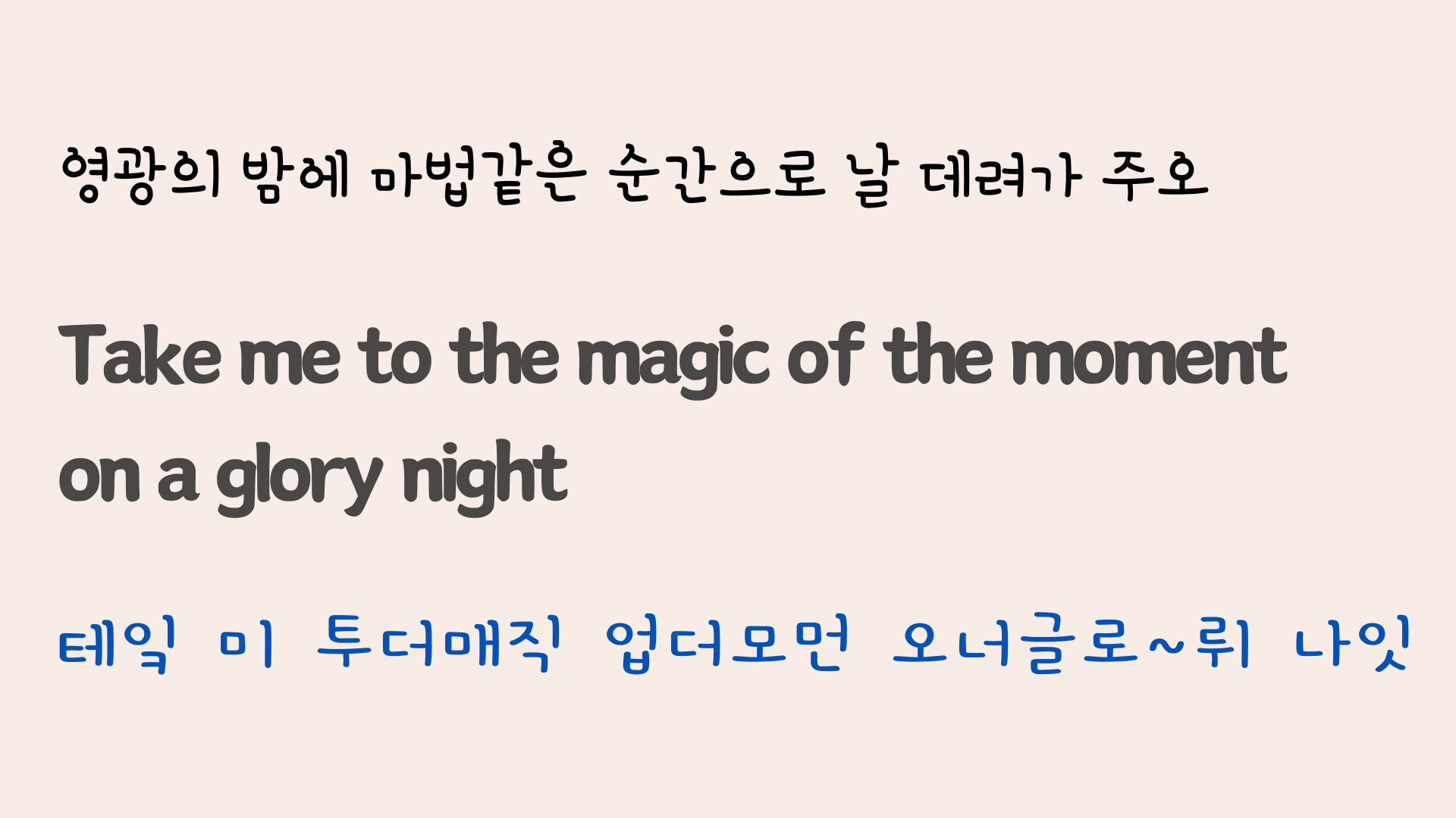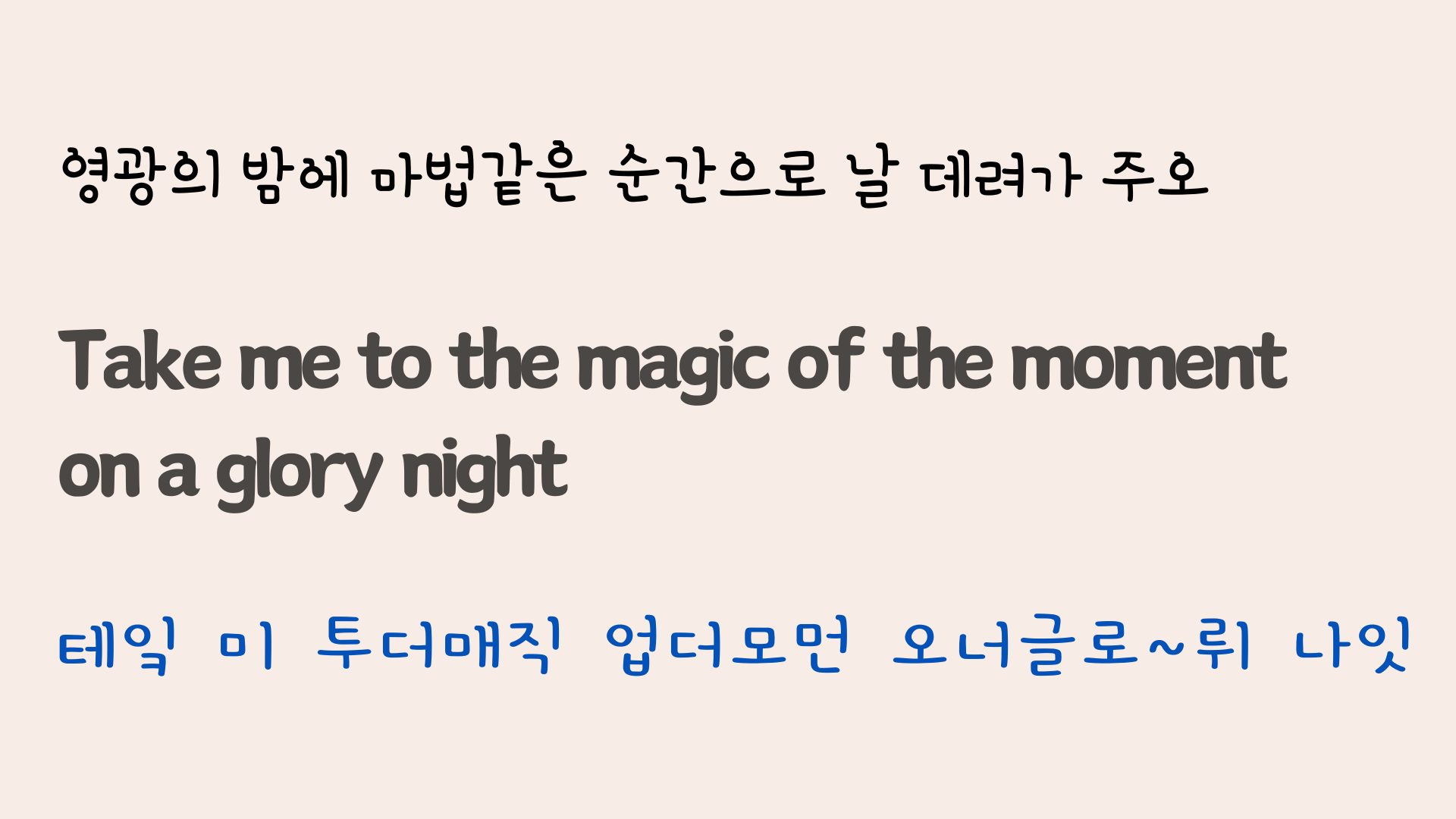 노래를 한 소절을 나누어서 발음의 원리를 설명해 보았습니다. 노래를 좀 더 선명하게 듣고 따라 불러 보는데 도움이 되었으면 하는 바람입니다.