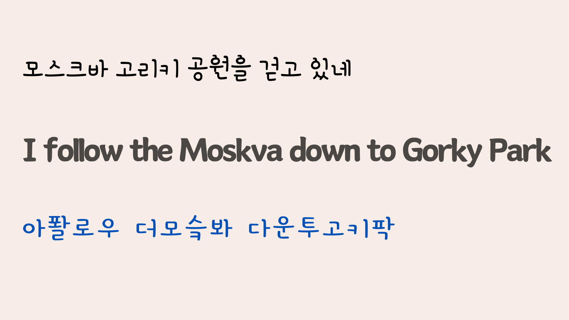 위의 영상에서 발음의 원리를 이해했다면 이번에는 반복 연습을 할 차례입니다. 아래 영상을 보면서 함께 불러 보시면 좋겠습니다.