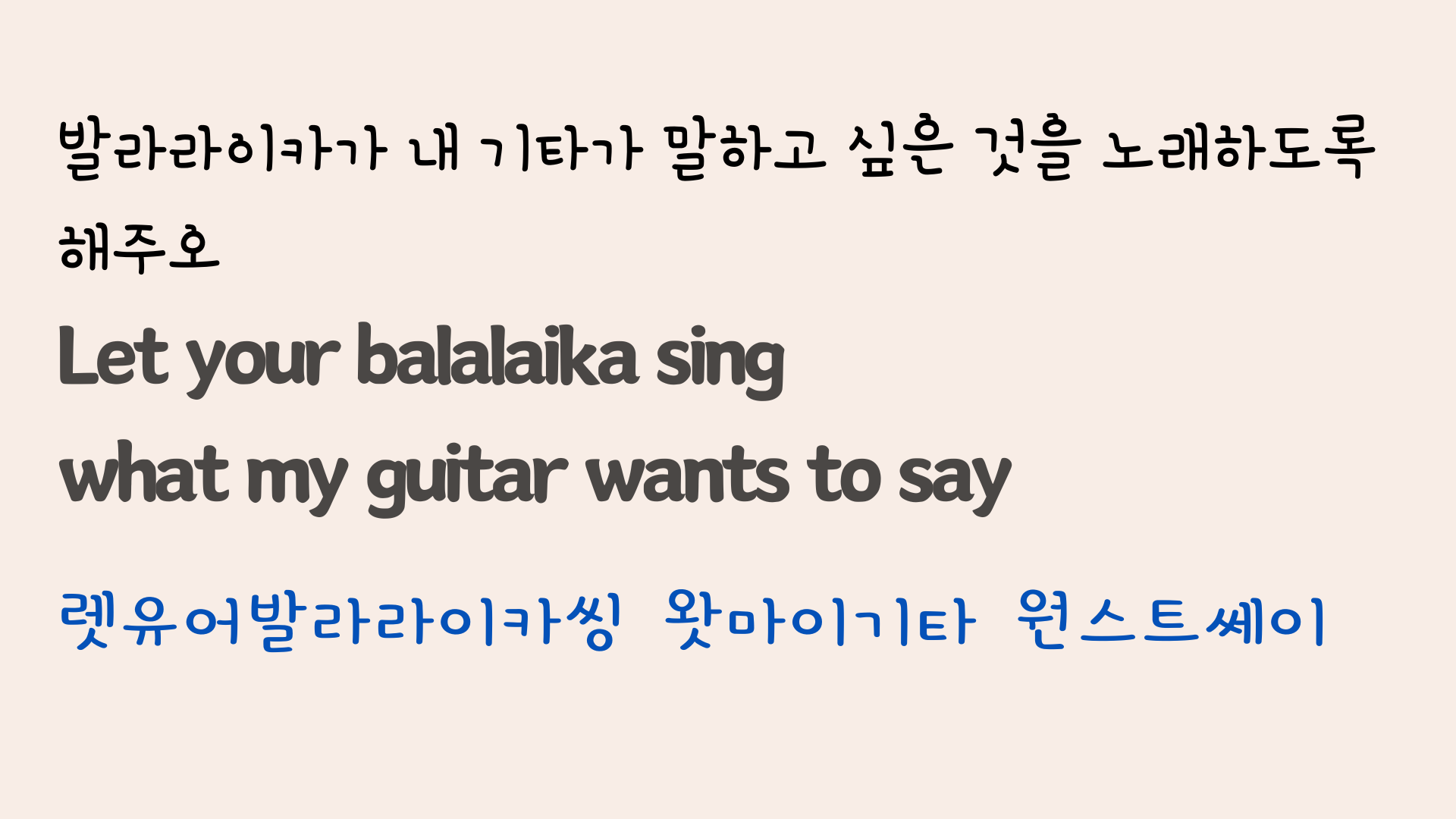 영상에 포함된 가사와 해석, 그리고 우리말 발음이 포함된 슬라이드입니다. 필요하시다면 다운로드하여 사용해 보셔도 좋겠습니다.