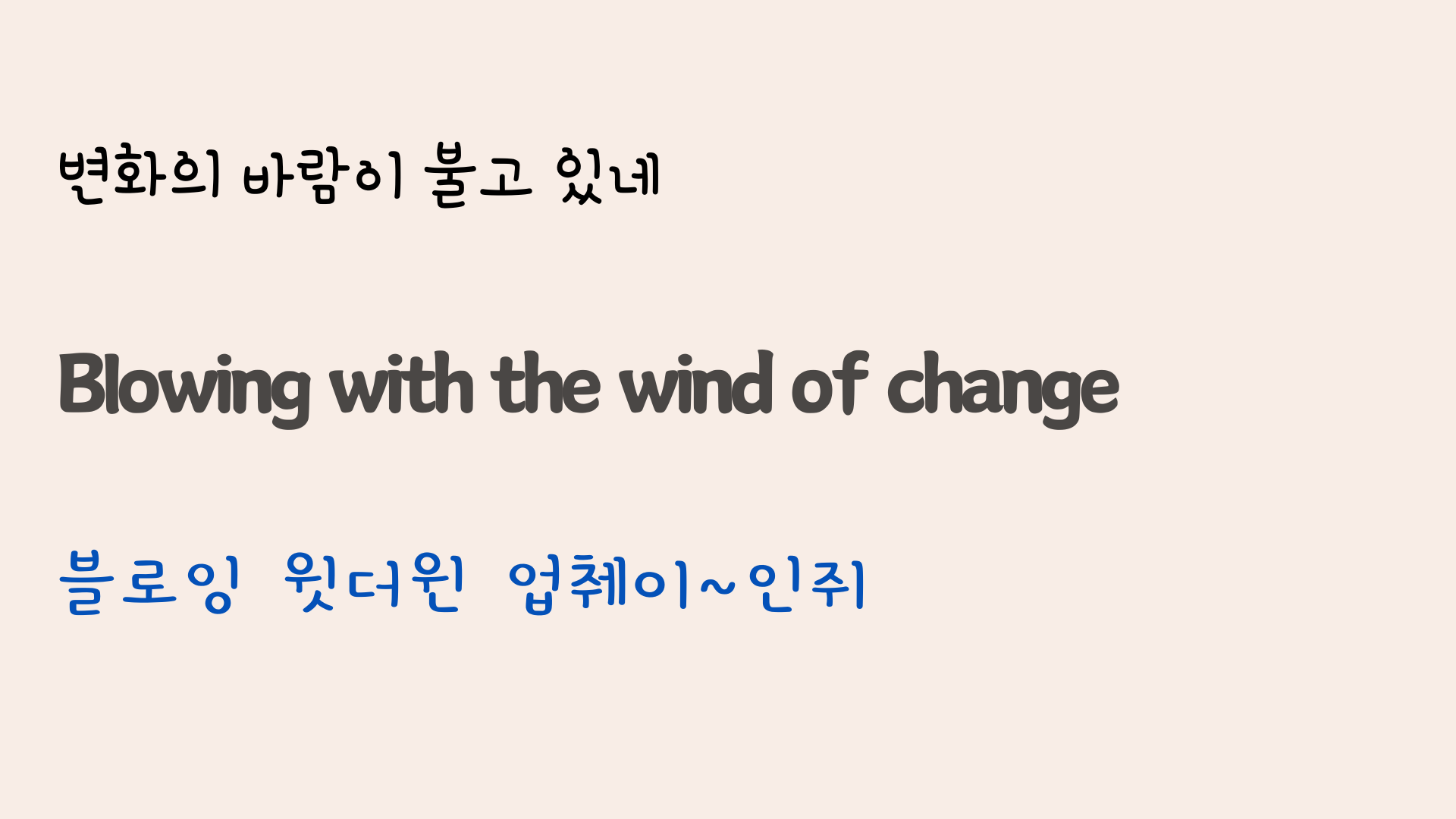 사회주의 국가에 개방의 물결이 불던 때가 있었죠. Wind of Change는 그즈음에 나온 노래로서 도입부의 휘파람 소리가 무척 인상적인 팝송입니다. 오늘은 이 노래의 가사와 해석, 그리고 영어 발음에 대해 공부해 보도록 하겠습니다.