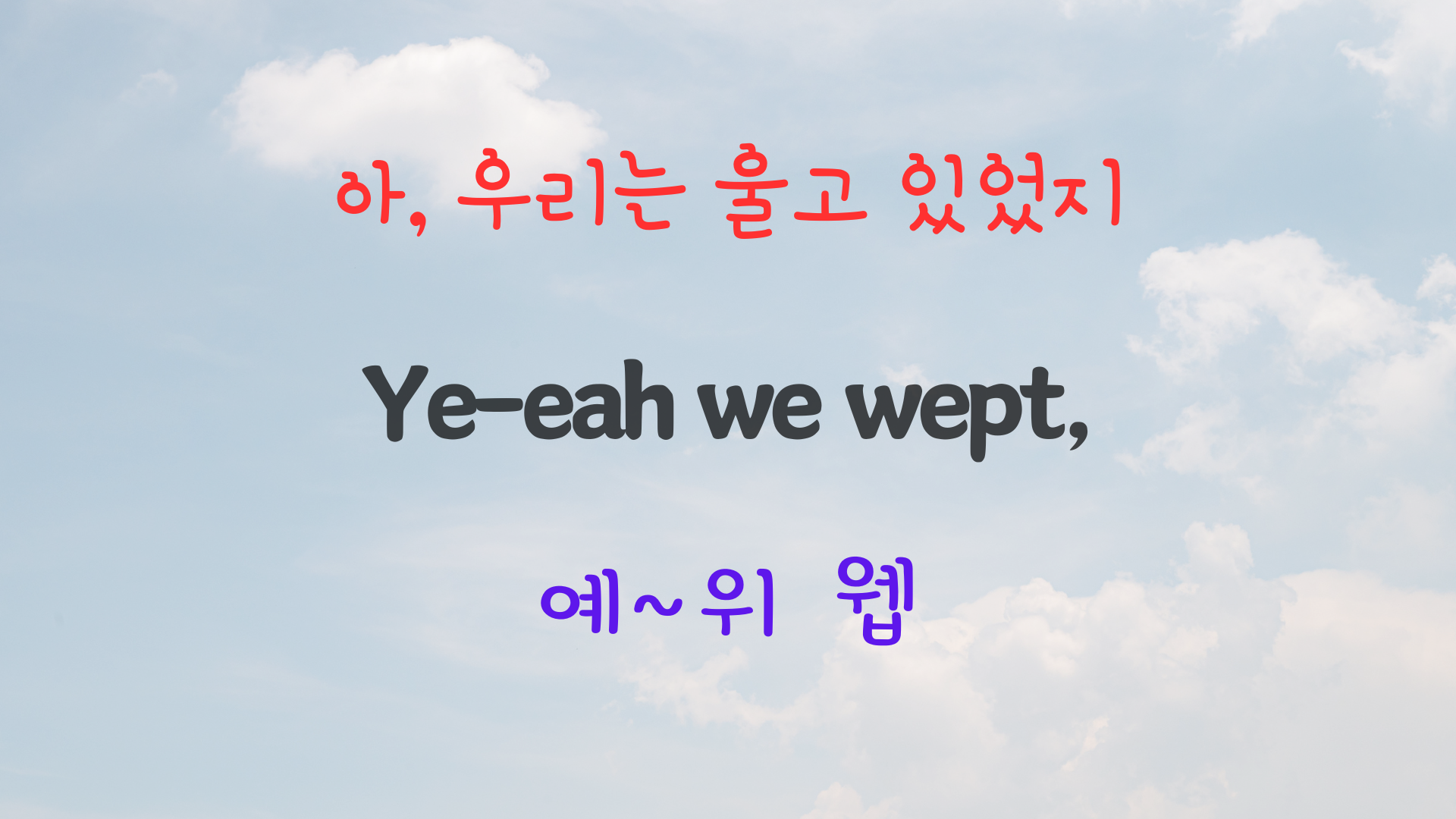 가사 한 소절씩 어떻게 발음되는지 설명해 보았습니다. 영상을 보고 나시면 노래가 훨씬 잘 들리고 따라 부르는데 자신감을 얻지 않을까 싶습니다.