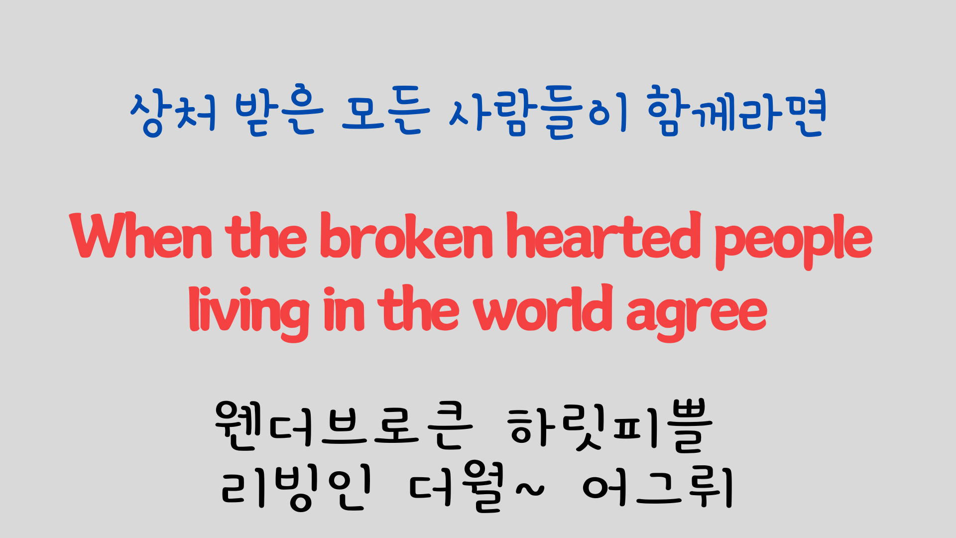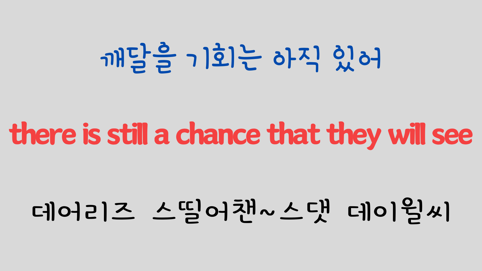 영어 발음 원리를 익히셨다면 이제는 노래를 반복해서 들으면서 완전히 나만의 노래로 만들어 보시기 바랍니다.