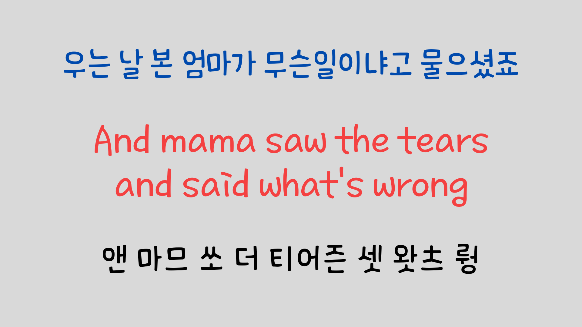 그래서 그런지 노래의 멜로디와 가수의 음색에 슬픔과 좌절이 깊이 배어 있는 듯한 느낌을 가질 수 있었습니다.그럼 지금부터는 노래 가사와 영어 발음의 원리에 대해 함께 공부해 보겠습니다.