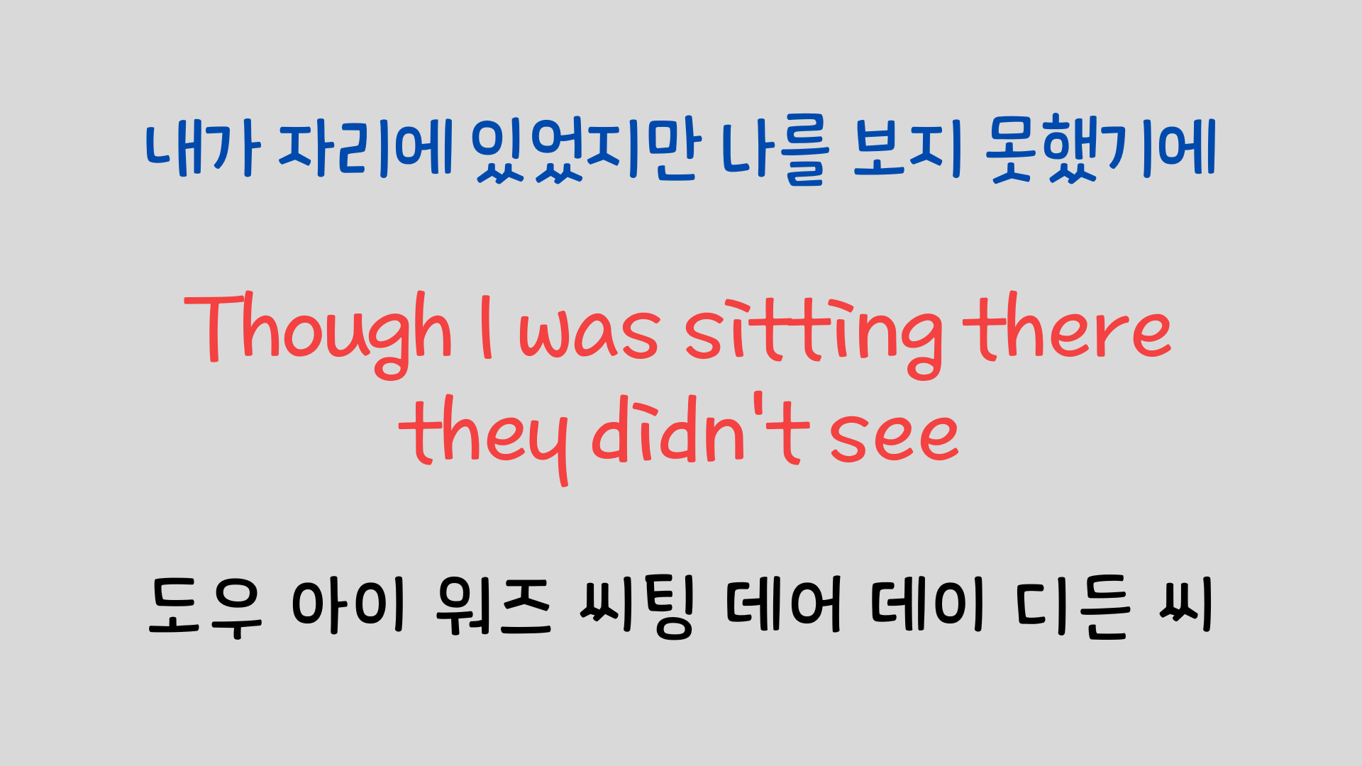 노래를 한 소절씩 나눠서 가사의 뜻과 주의해야 할 발음에 대해 설명해 보았습니다. 영어 특유의 연음과 강세 등을 익혀두면 훨씬 잘 들리고 더 나아가서 따라 부르기도 한층 수월해질 거라 생각합니다.https://youtu.be/MGBhEH59Aj4