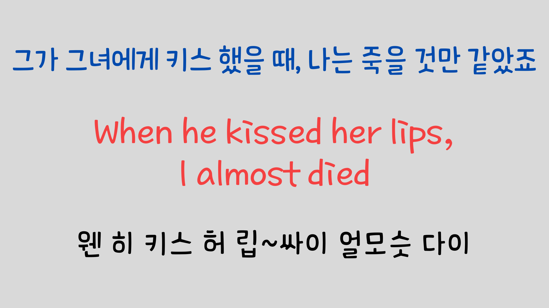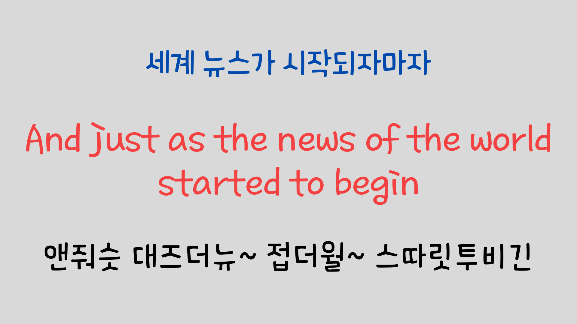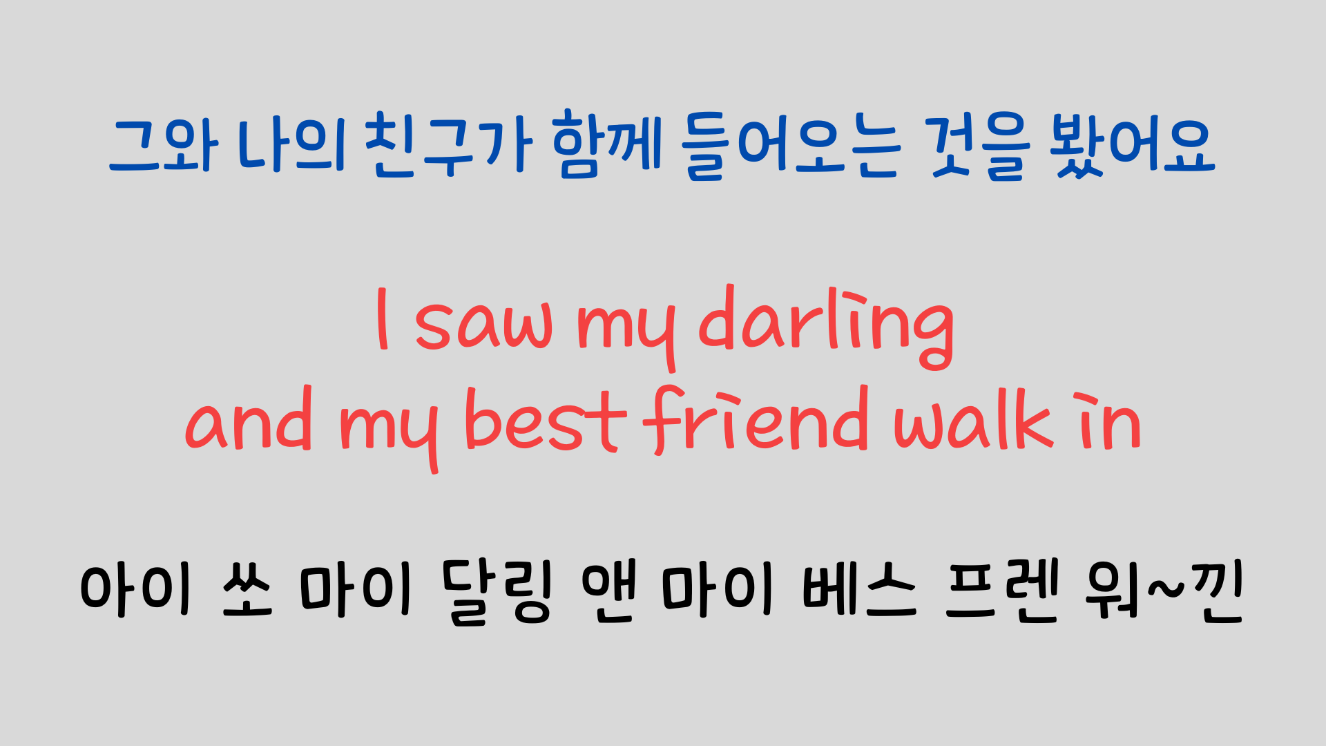 노래를 한 소절씩 나눠서 가사의 뜻과 주의해야 할 발음에 대해 설명해 보았습니다. 영어 특유의 연음과 강세 등을 익혀두면 훨씬 잘 들리고 더 나아가서 따라 부르기도 한층 수월해질 거라 생각합니다.https://youtu.be/MGBhEH59Aj4