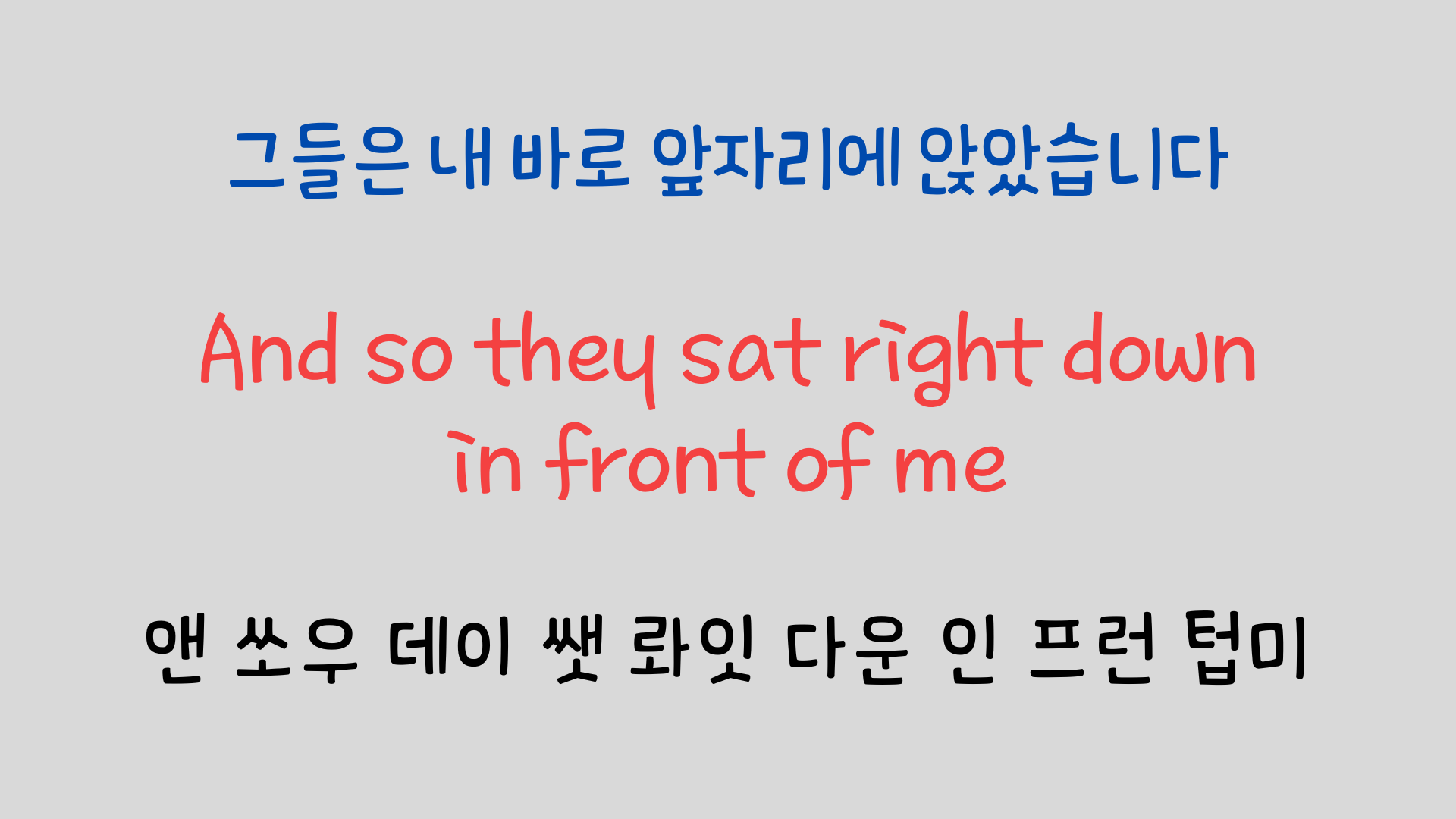 한 소절씩 나눠서 발음을 정복했다면 이제는 노래를 처음부터 끝까지 반복해서 들으면서 총정리를 해 줄 시간입니다. 분명히 이전보다 가사가 선명하게 잘 들리지 않으실까 싶습니다.https://youtu.be/R9z0nTVYBeo