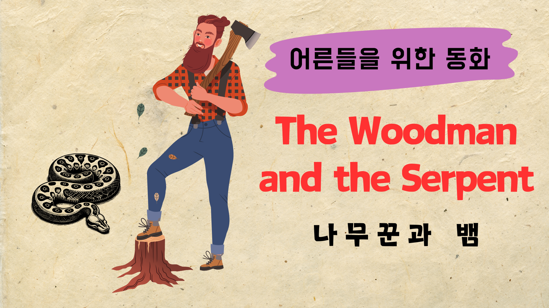어른들을 위한 영어 동화 읽기 시간입니다. 오늘 준비한 내용은 이솝 이야기에 나오는 '나무꾼과 뱀 The Woodman and the Serpent'입니다.