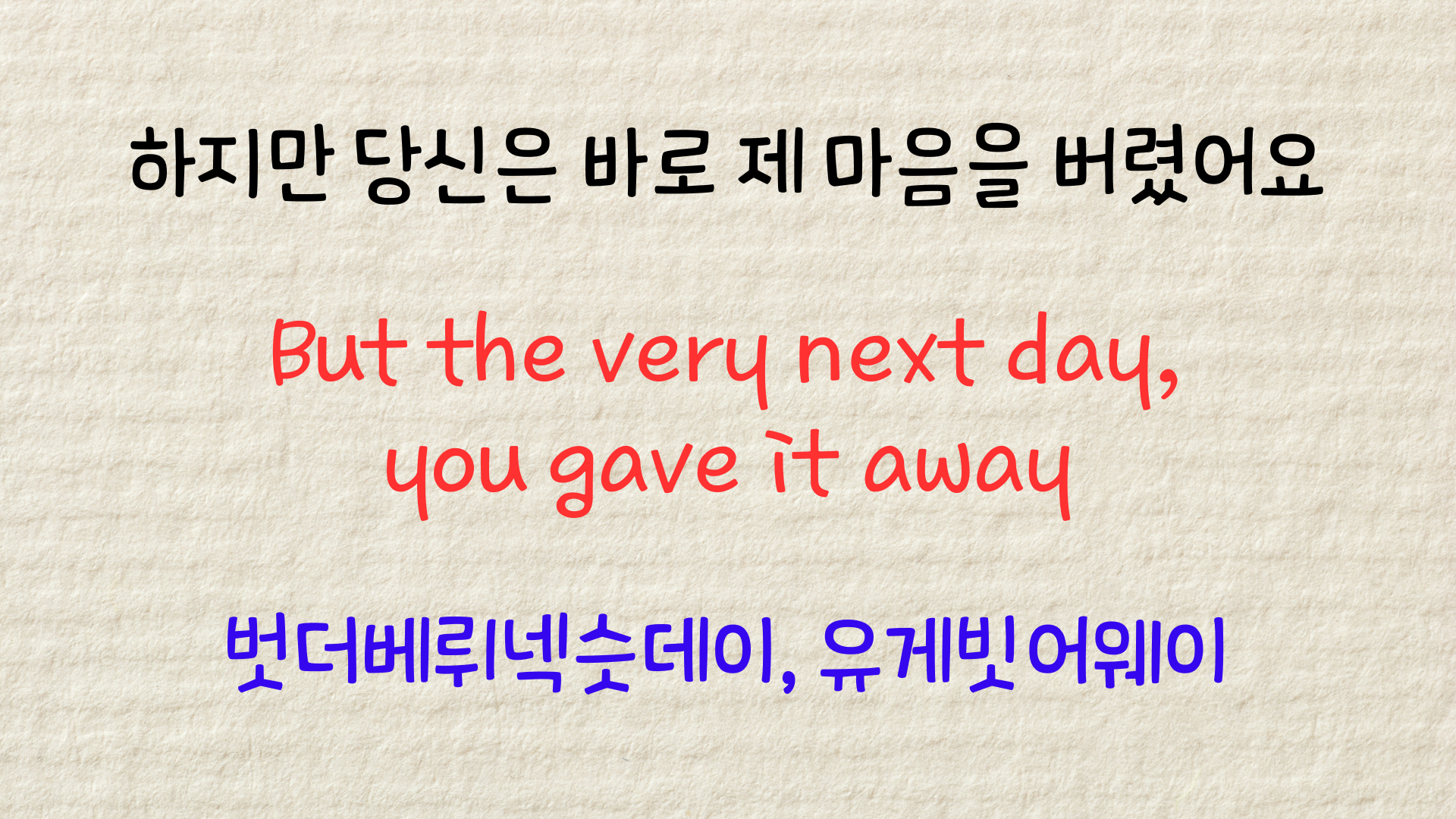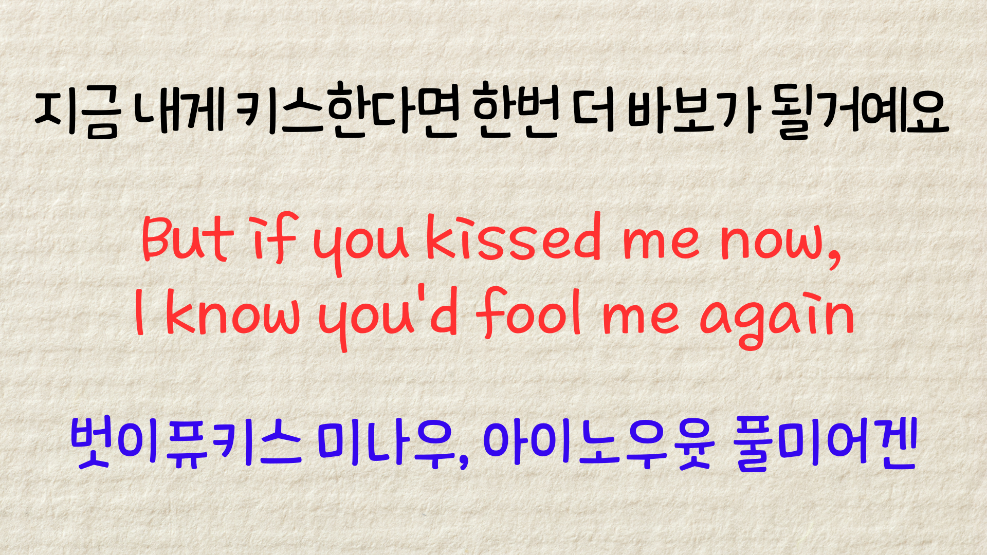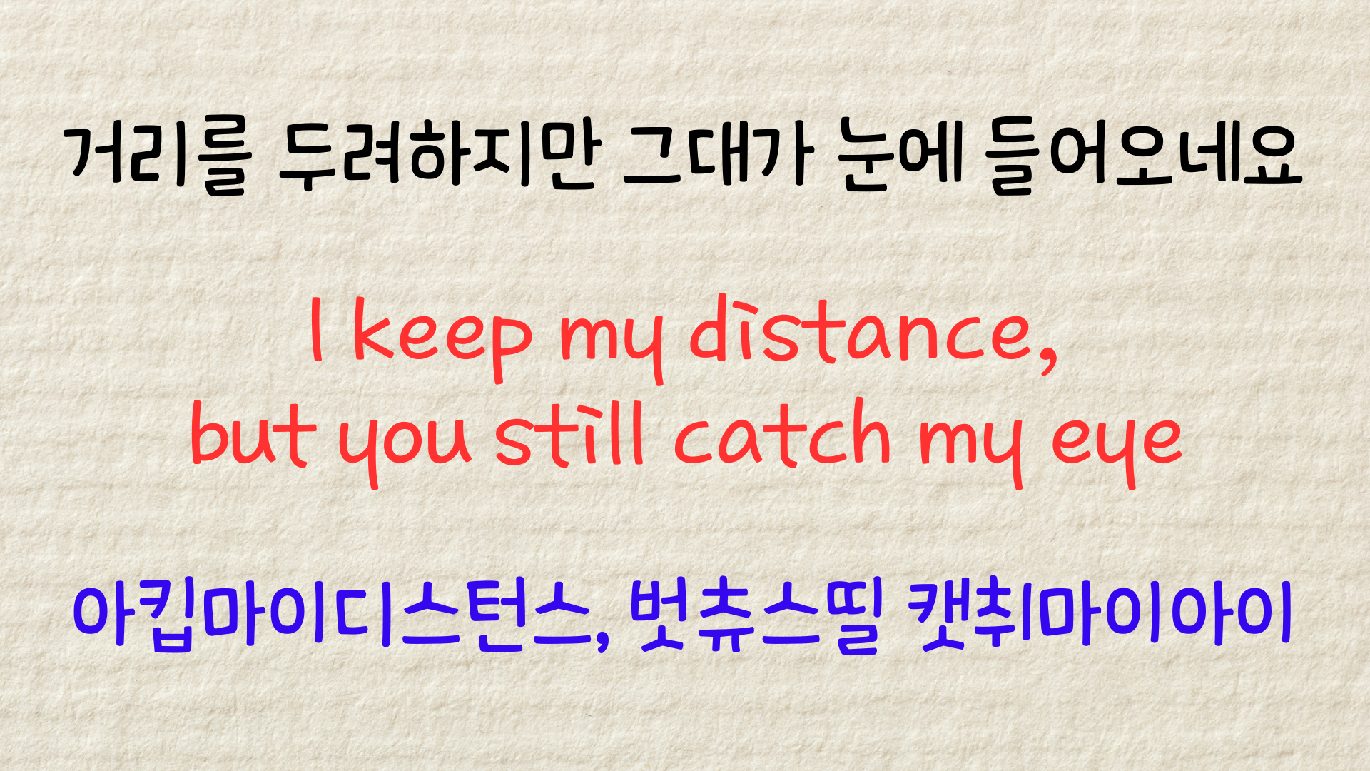 가사의 의미와 발음의 원리를 익히셨다면 이제는 이 노래를 반복해서 듣고 가볍게 따라 불러볼 차례입니다.