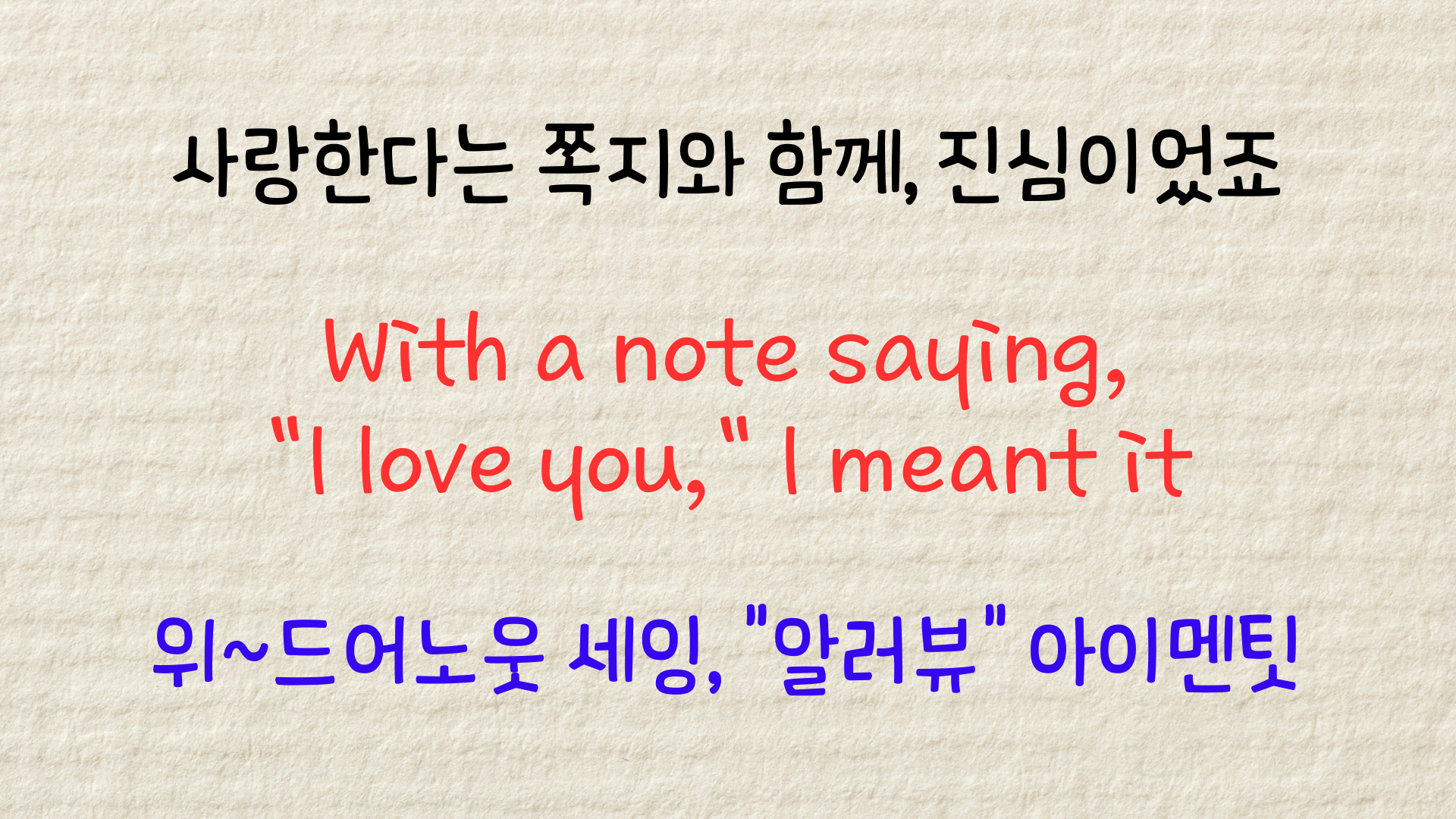 영상에 사용된 노래 가사 자료를 첨부합니다. 필요하시다면 언제든 다운로드하셔도 좋습니다.