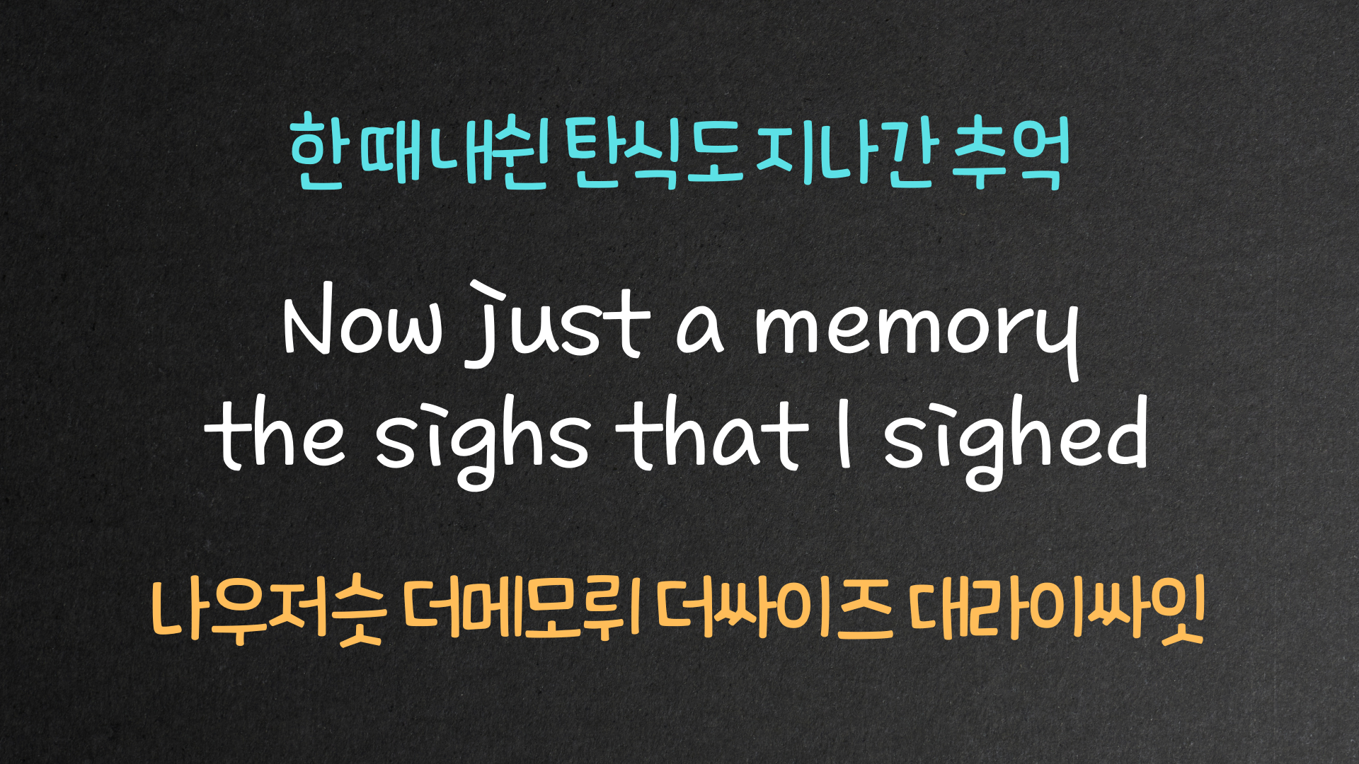 누군가를 사랑하게 되면서 과거에 가졌던 눈물과 한숨은 모두 사라지고 사랑하는 사람의 이름을 되뇌며 주체할 수 없는 행복한 감정이 노래에 깊이 스며 있는 노래라 할 수 있겠습니다. 가사 한 소절씩 어떤 의미인지 알아보고 발음의 특징까지 확인해 보도록 하겠습니다.