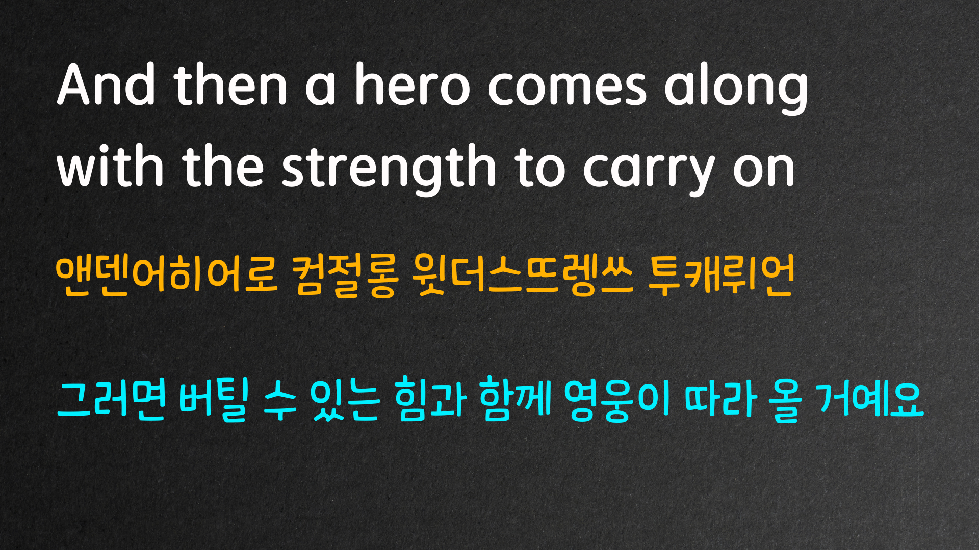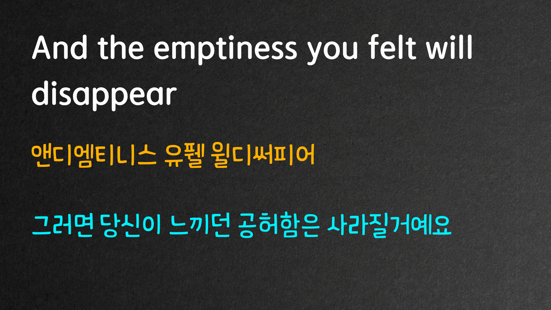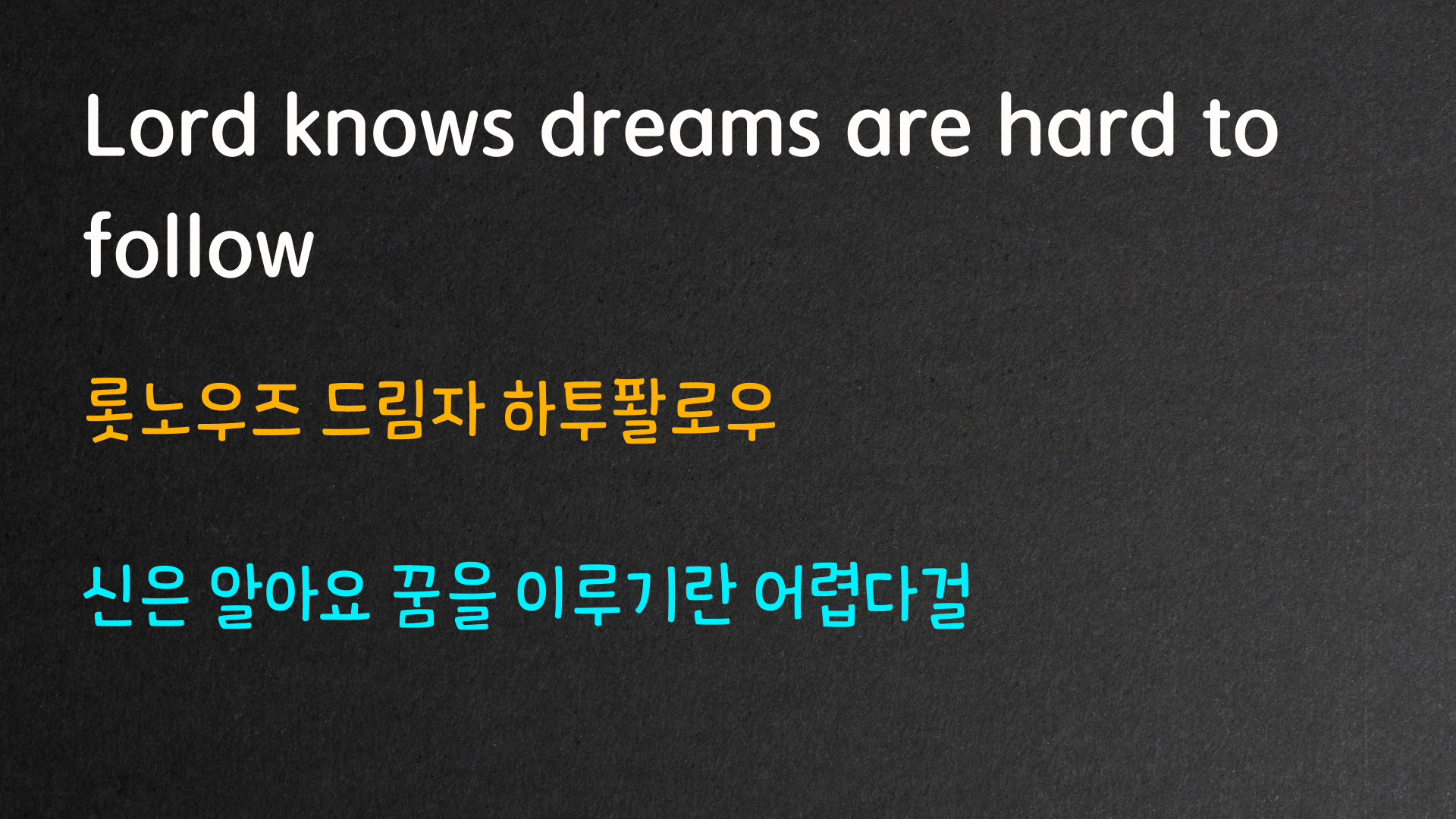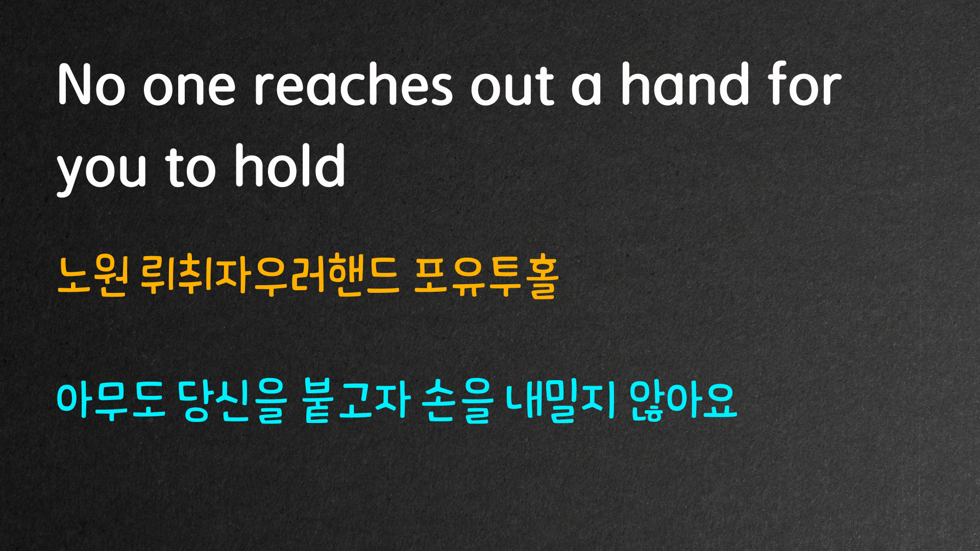 가사의 의미와 발음에 대해 어느 정도 이해를 높였다면 이제는 노래를 반복해서 듣고 소리 내어 불러볼 차례입니다. 다섯 번 반복되는 영상이니 쭈욱 들어보시면 좋겠습니다.