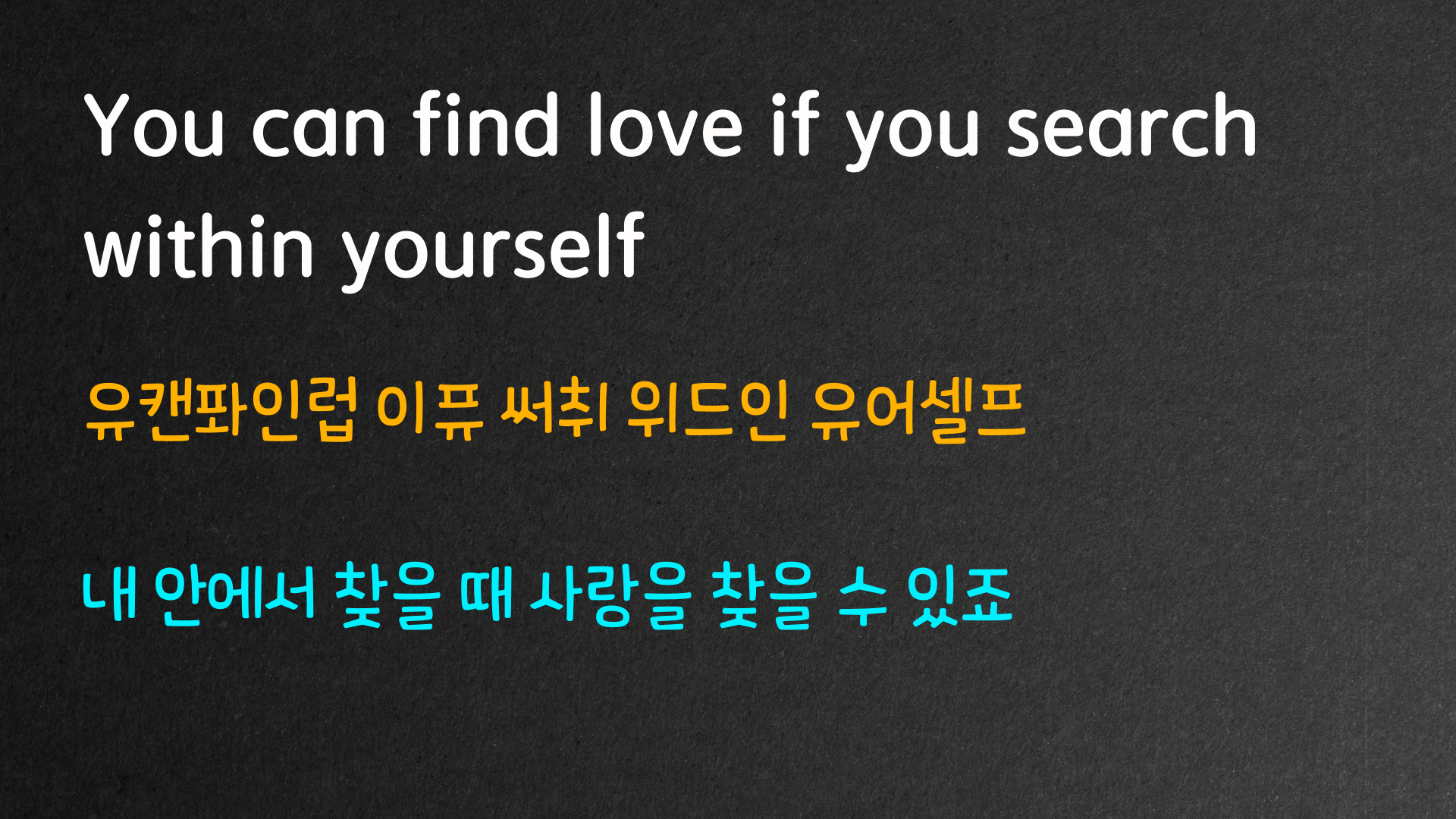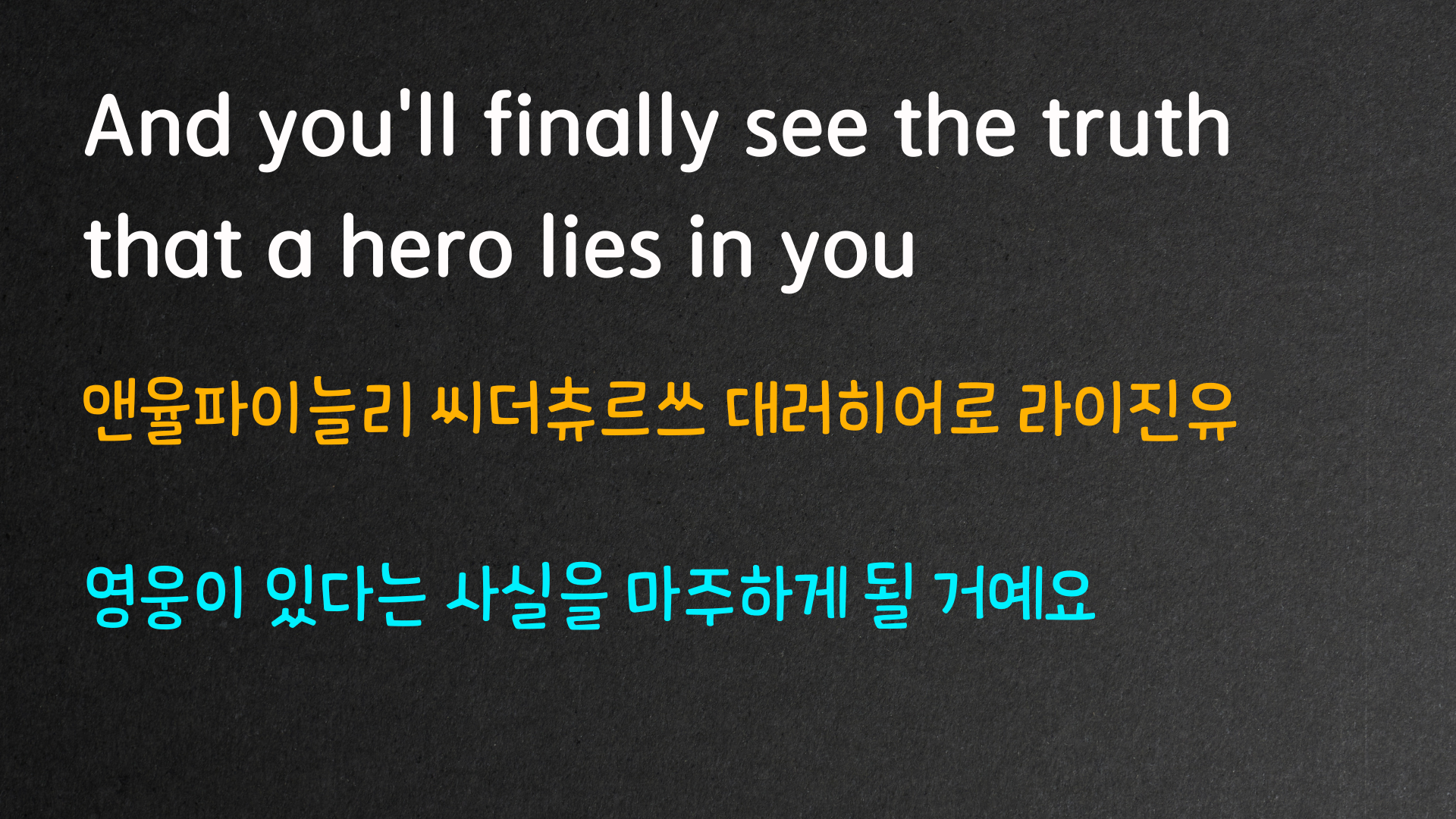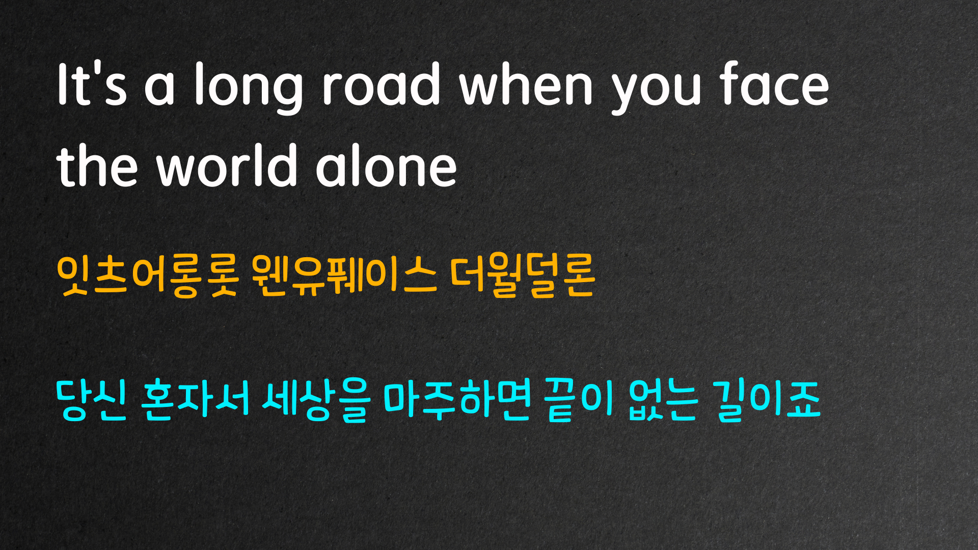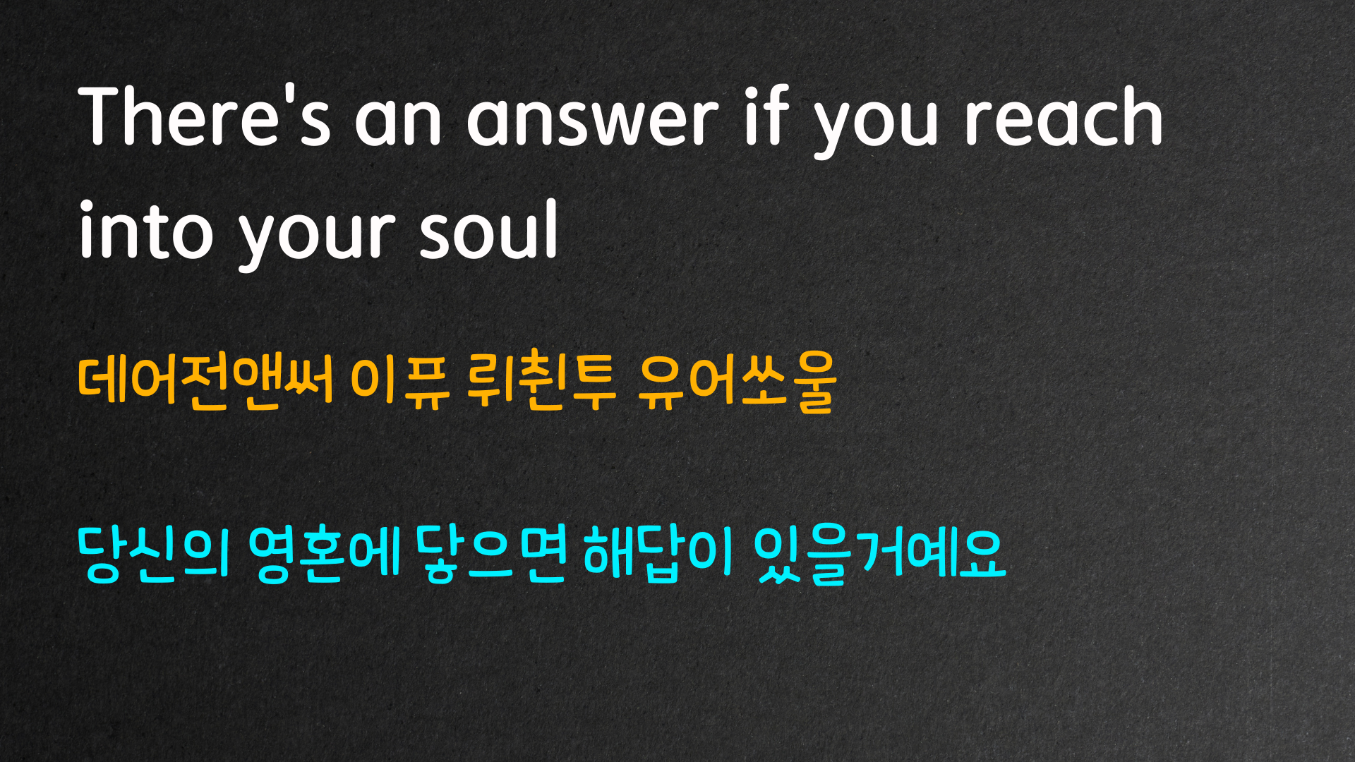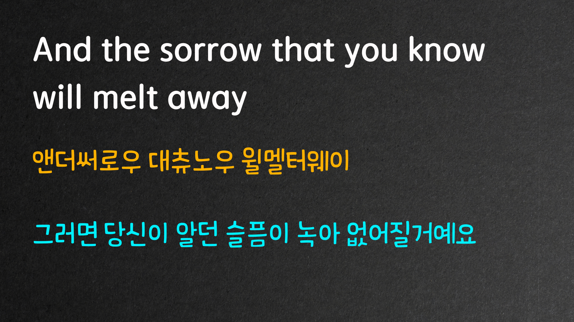 가사의 의미와 발음에 대해 어느 정도 이해를 높였다면 이제는 노래를 반복해서 듣고 소리 내어 불러볼 차례입니다. 다섯 번 반복되는 영상이니 쭈욱 들어보시면 좋겠습니다.