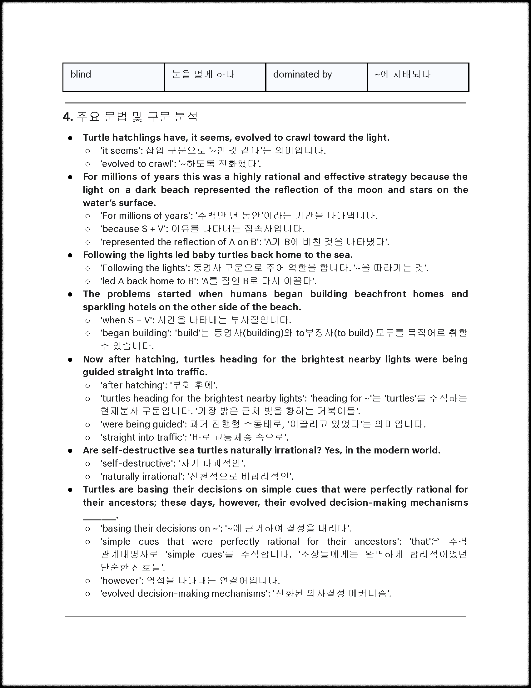 문제와 해석, 어휘, 구문 분석이 되어 있고