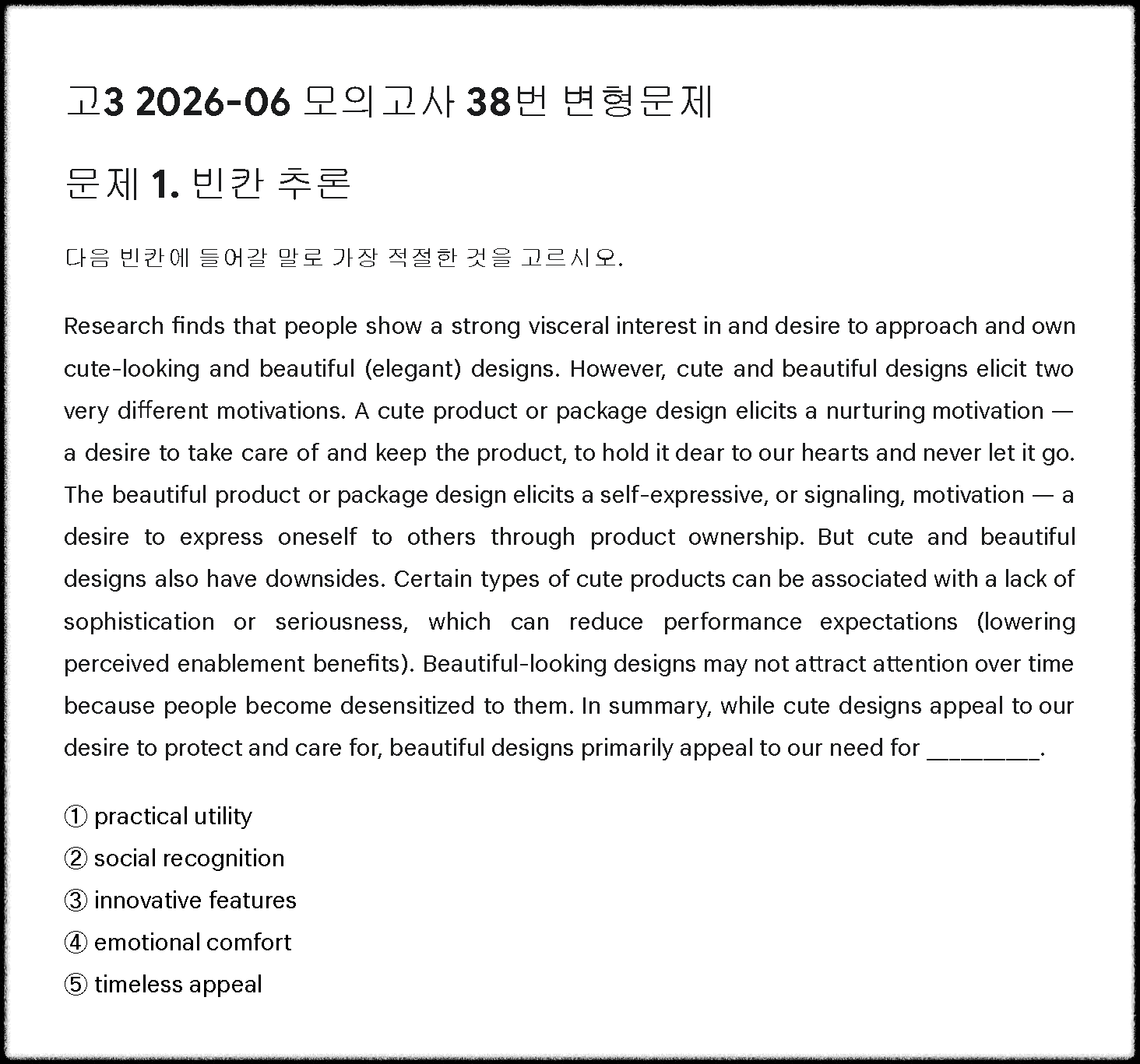 저는 2026학년 6월 모의고사 변형 문제를 준비했습니다.