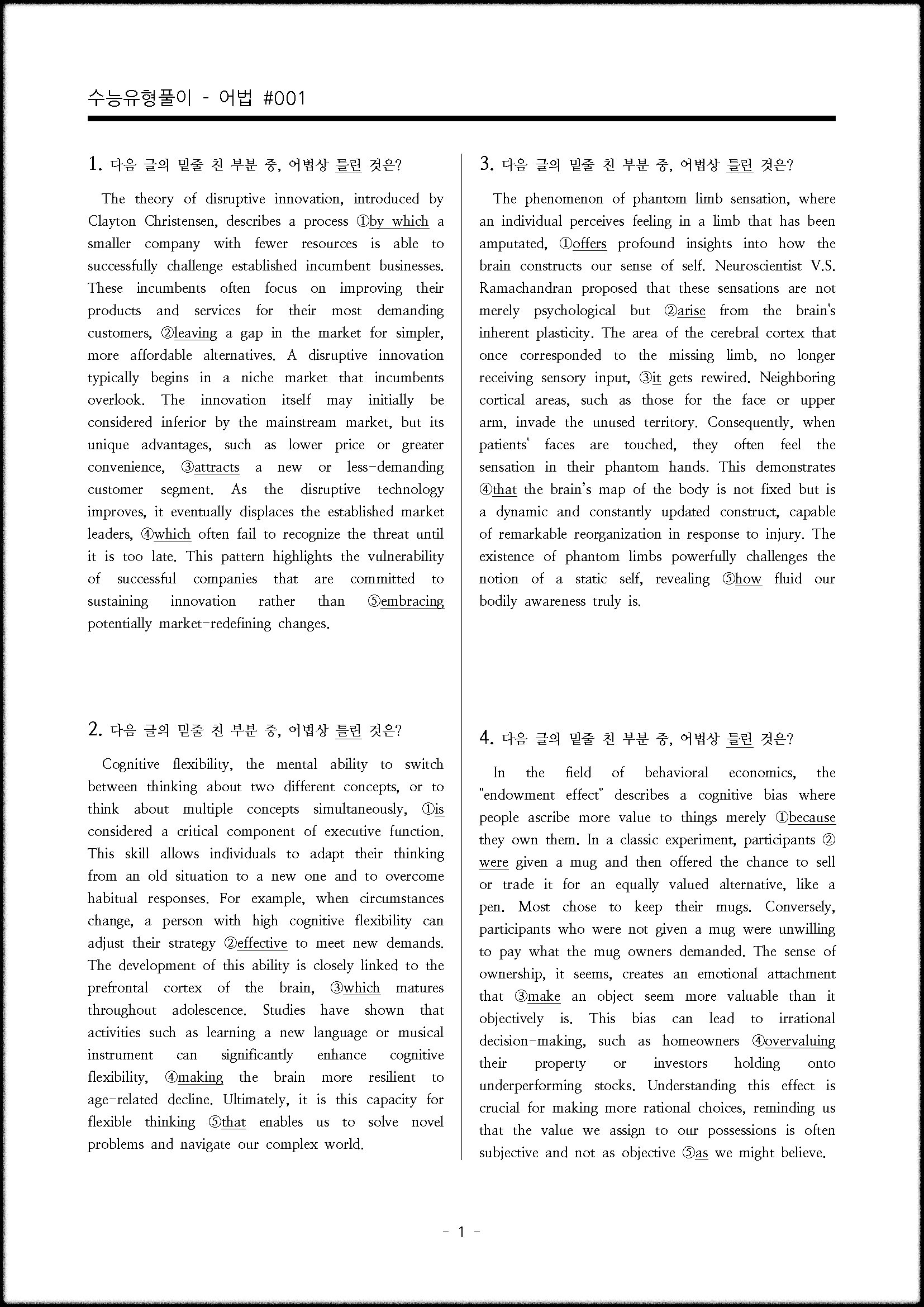 [무료] 수능 어법 문제 유형 집중 공략 문제 내려 받기