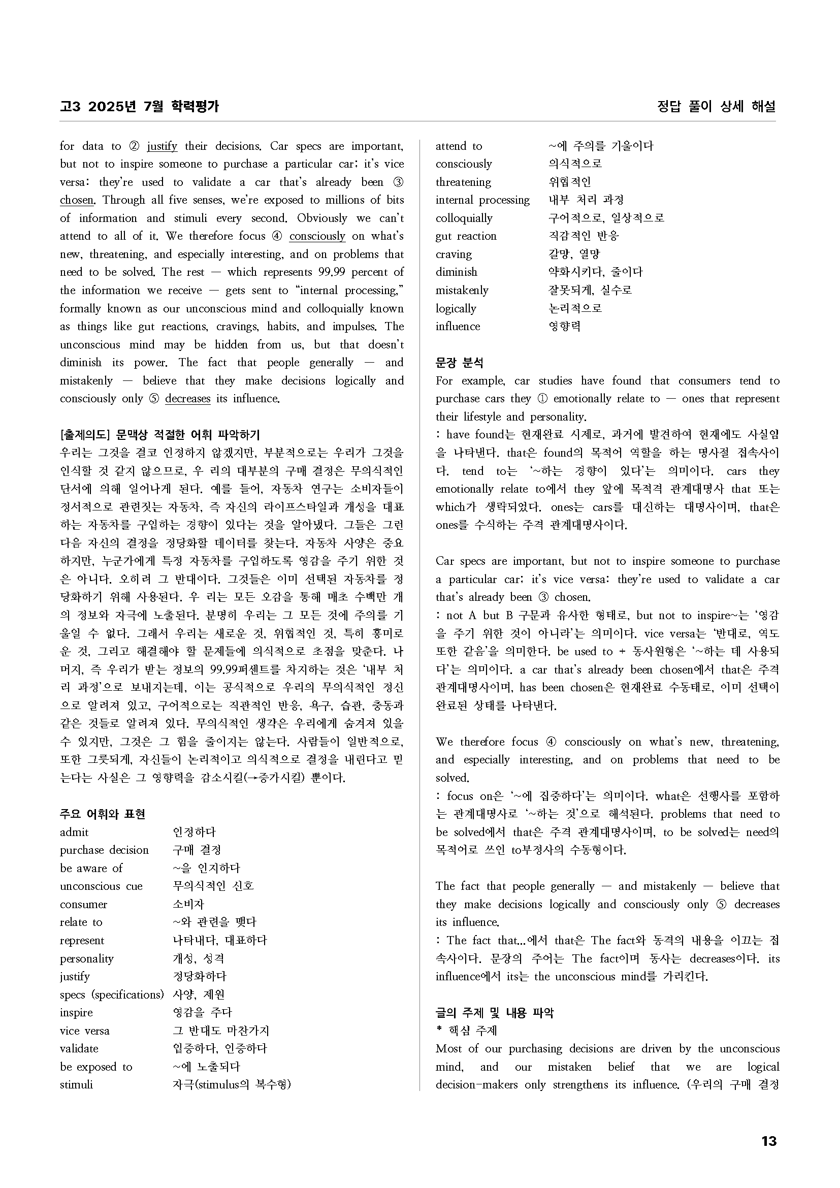 고3 2025년 7월 학력평가 영어 상세문제풀이 - 쏠북