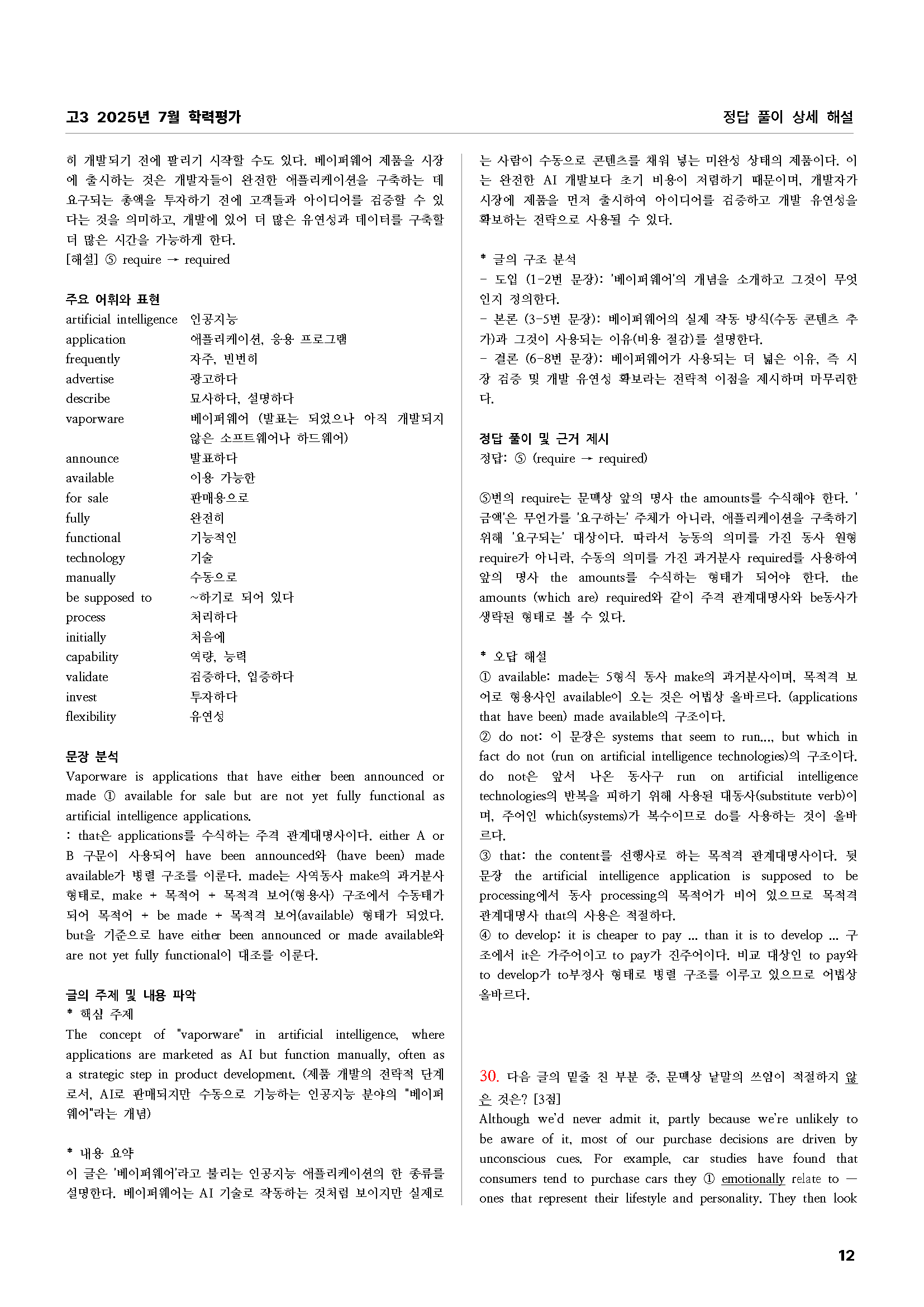 2025년 7월 학력평가 모의고사 영어 시험 지문에 대한 해설 자료입니다.