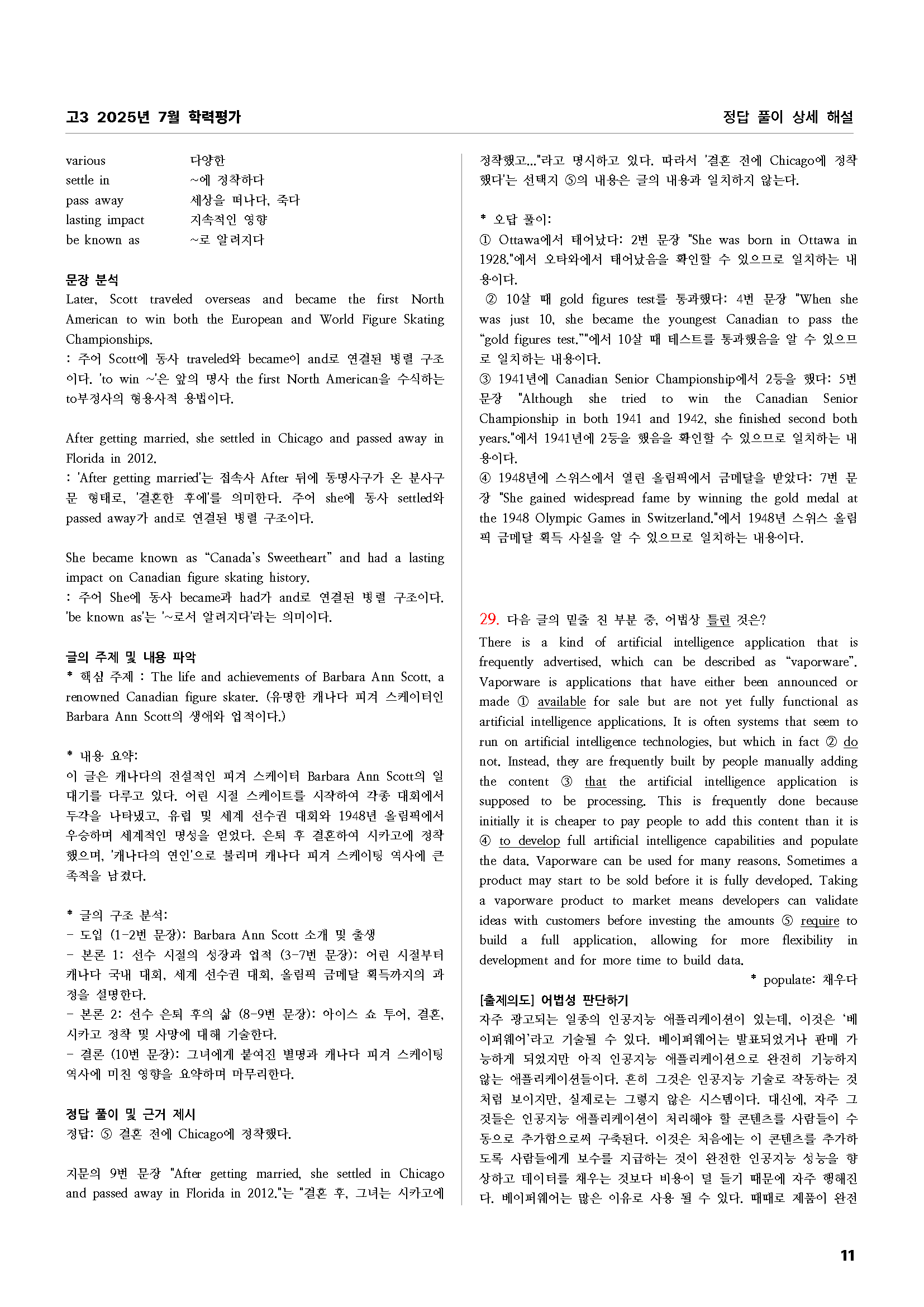 2025년 7월 학력평가 영어 모의고사 상세 풀이 해설집입니다. - 시험 지문 - 지문 해석 - 주요 어휘와 표현 정리 - 주요 문장 구문 분석 - 글의 주제 및 내용 요약 - 글의 구조 흐름 분석 - 정답 풀이