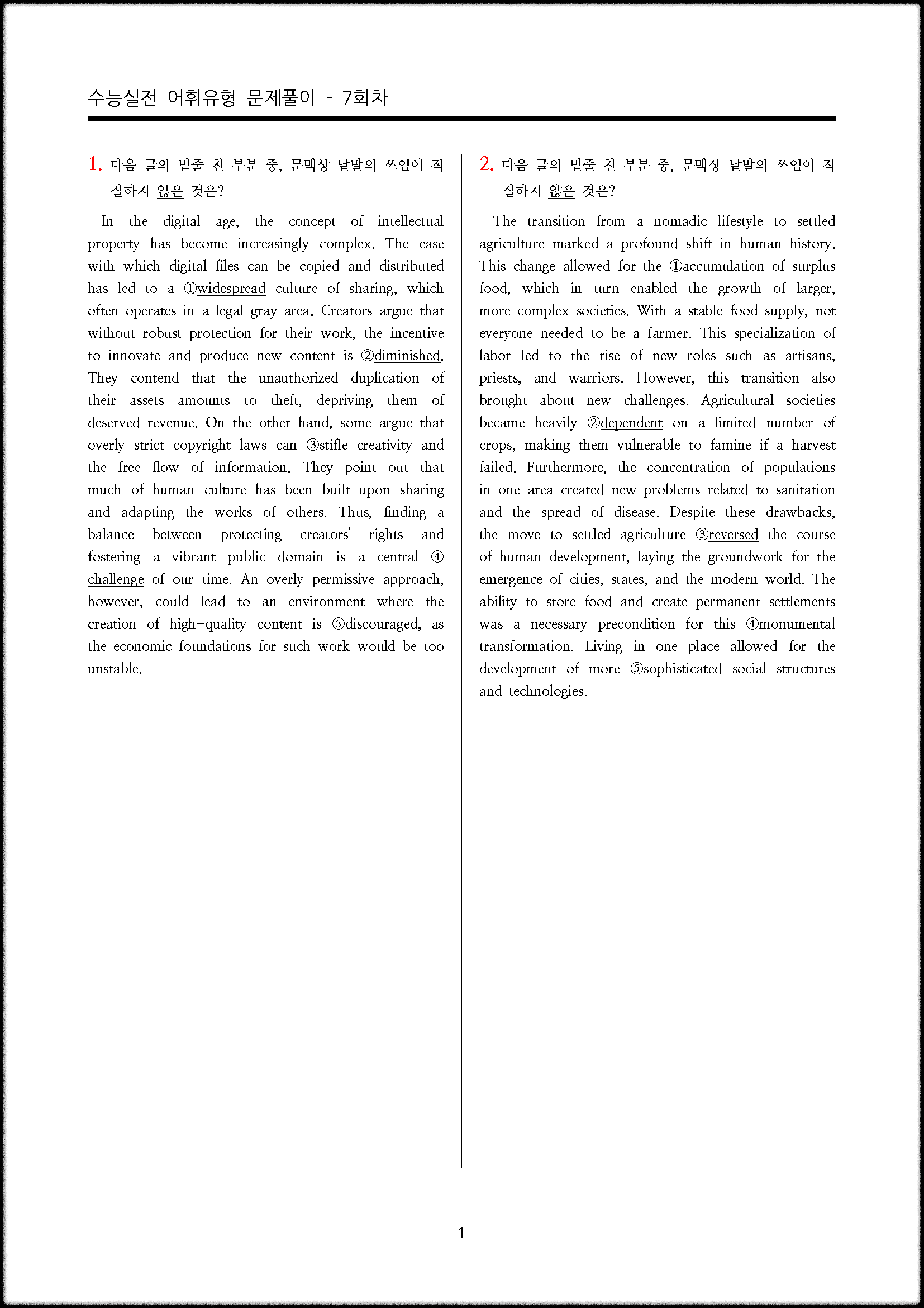 오늘은 어법, 빈칸추론에 이어 어휘선택 유형을 준비했습니다.