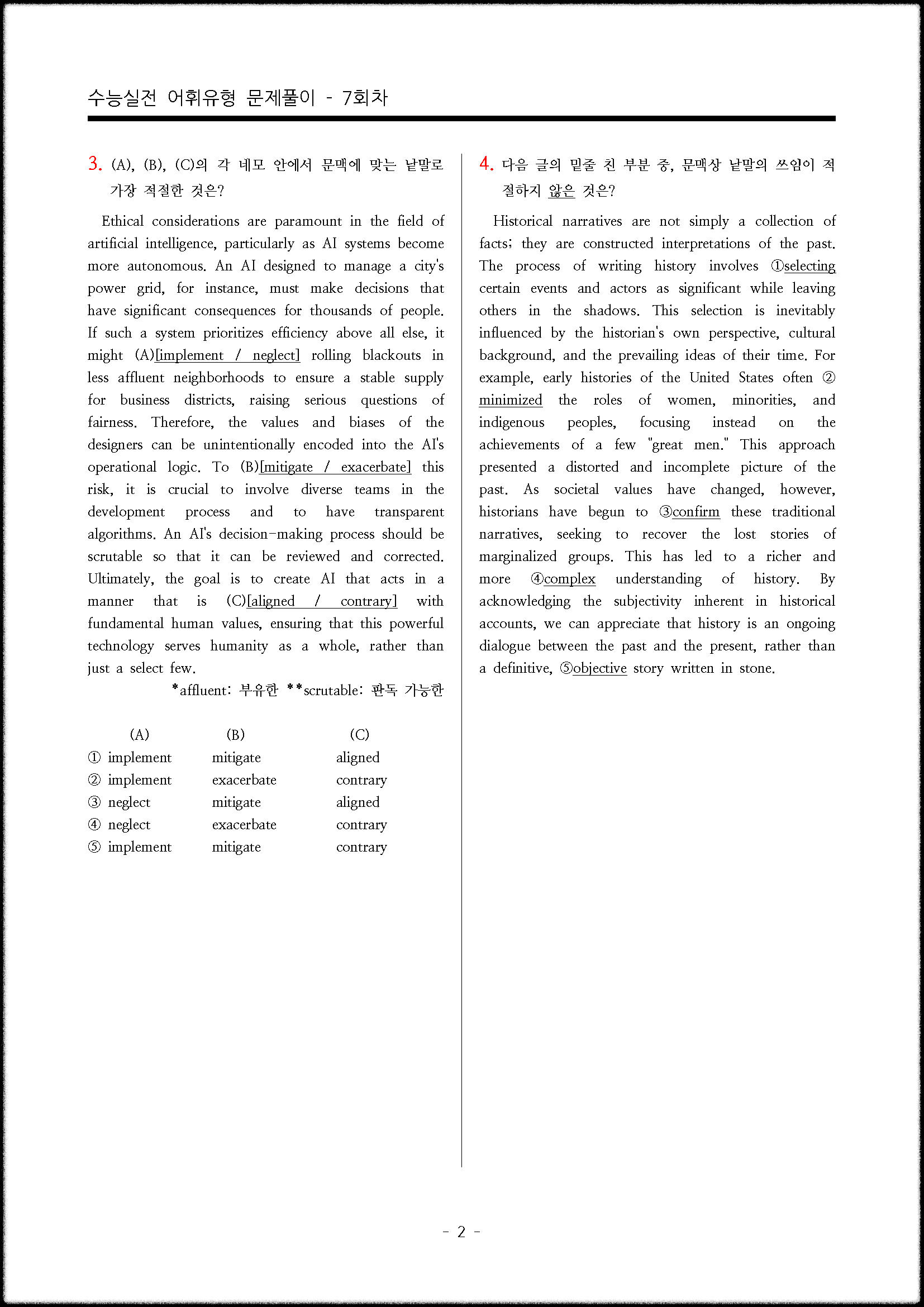 오늘은 어법, 빈칸추론에 이어 어휘선택 유형을 준비했습니다.