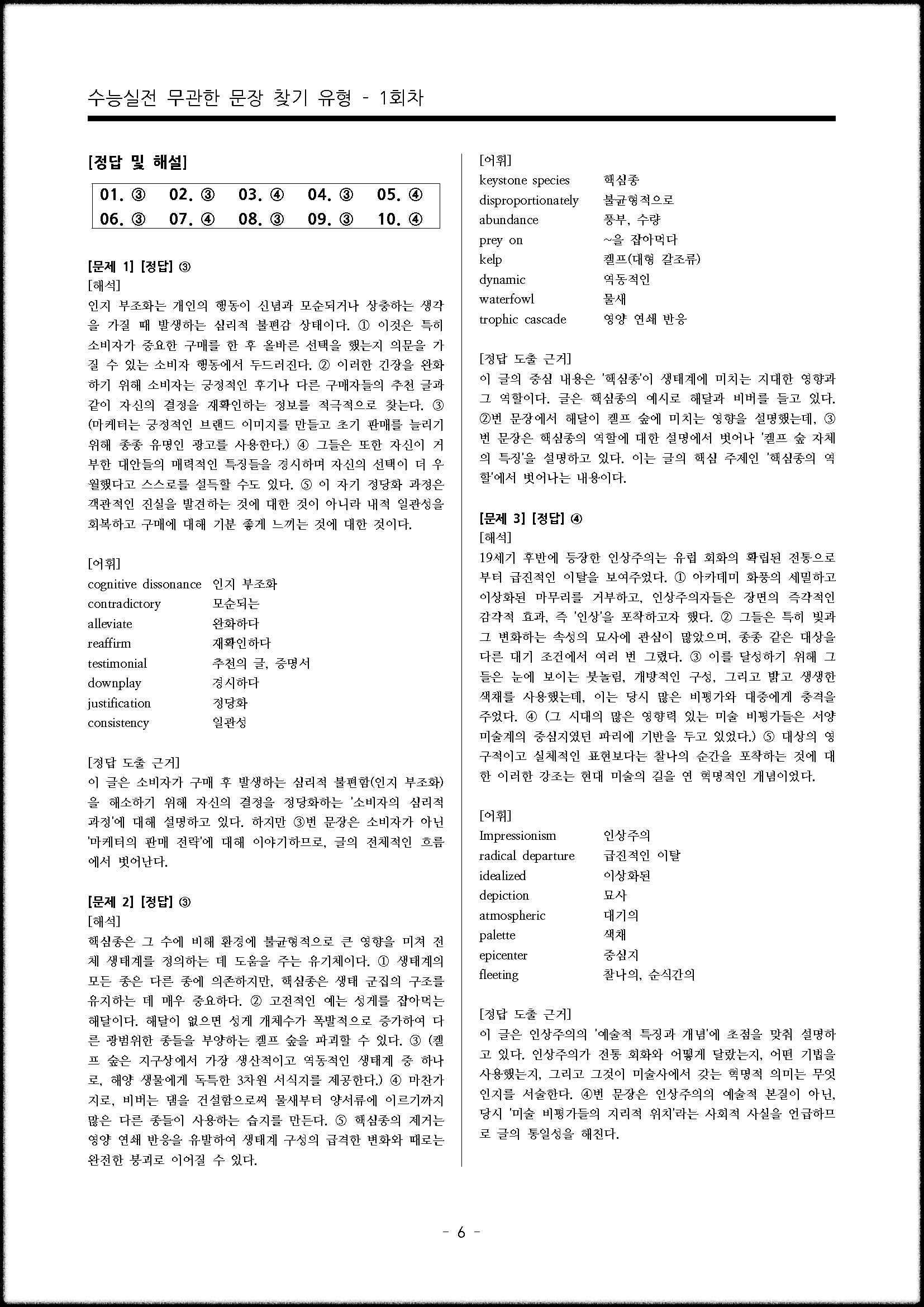 수능영어 무관한 문장 찾기 실전문제 100제 - 쏠북