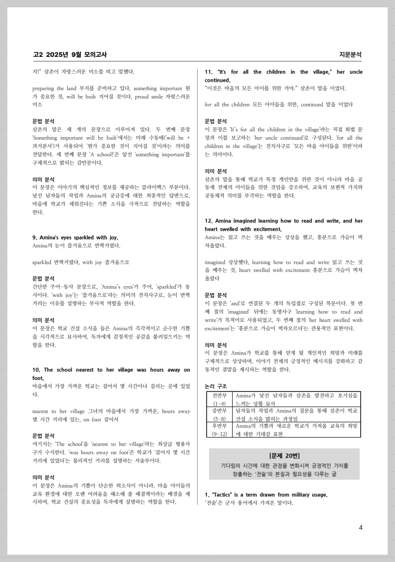 고2 2025년 9월 모의고사 지문분석 (단어 문법 의미 완전 분석) - 쏠북