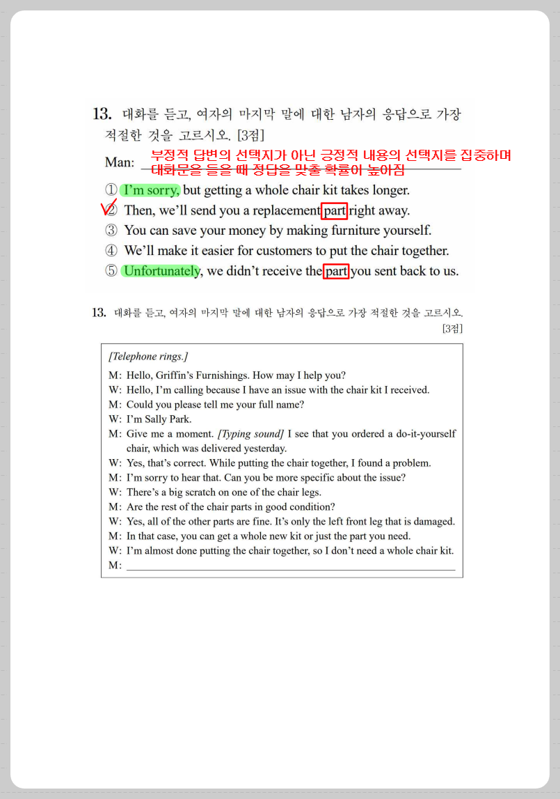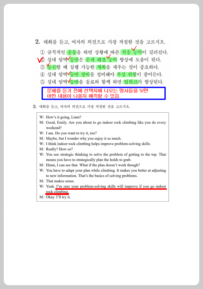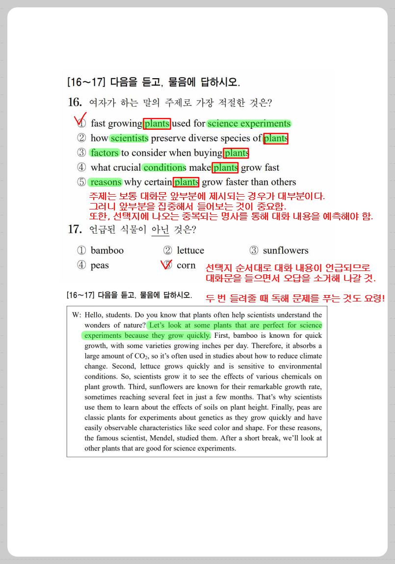 아래에 제시된 듣기 풀이 전략대로 연습해 보시면 듣기 점수에 큰 변화를 얻으실 수 있습니다.