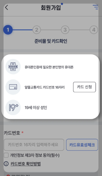 알뜰교통카드 홈페이지 또는 앱에서 회원가입 알뜰교통카드 사용