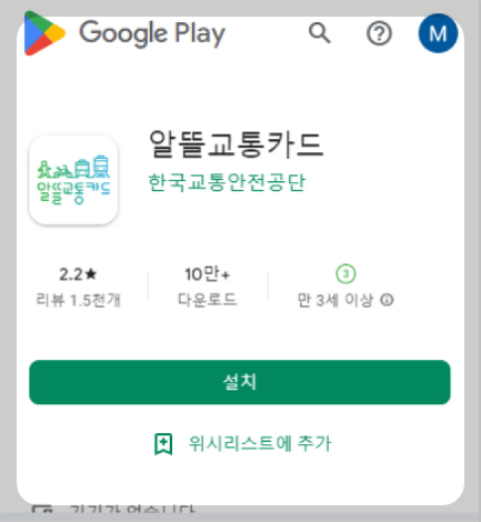 2. 구글, 애플, 삼성, 원스토어에서 앱 설치 알뜰교통카드 회원가입