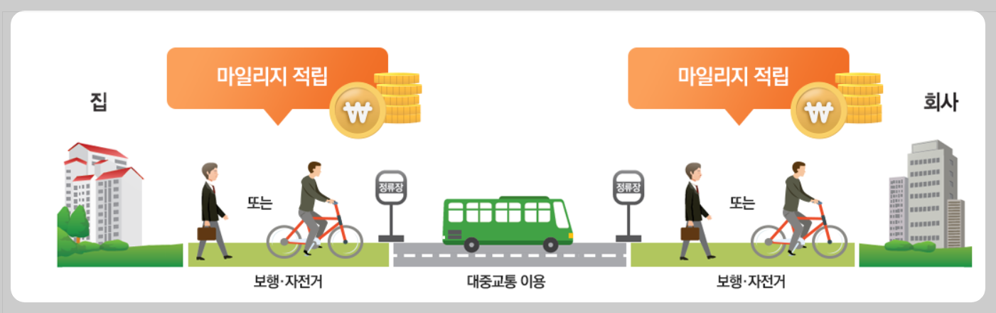 - 이동거리 최대 800m까지이며 참고로 미세먼지 저감조치 발령일, 환경 및 교통 관련 기념일에는 마일리지를 2배로 적립 받을 수 있으니 참고 바랍니다.