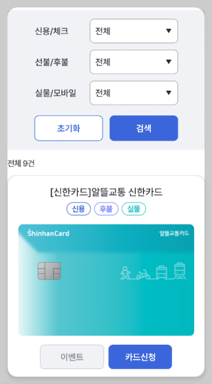 변경 전 : 신한, 우리, 하나, 캐시비, 티머니, IM원패스