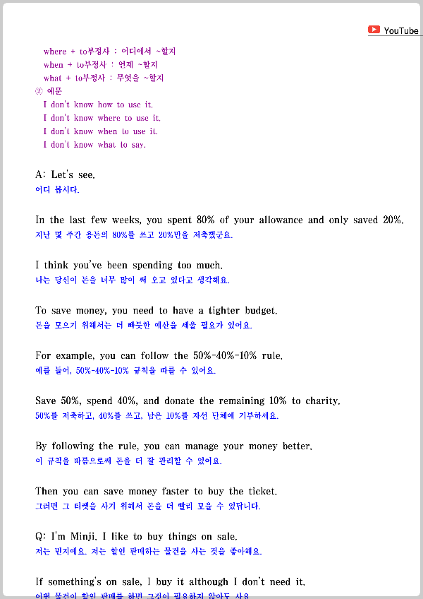 원어민이 들려주는 대화문을 듣고, 보면서 공부해 보세요. 첨부한 파일을 다운받아 활용해 보셔도 좋습니다.