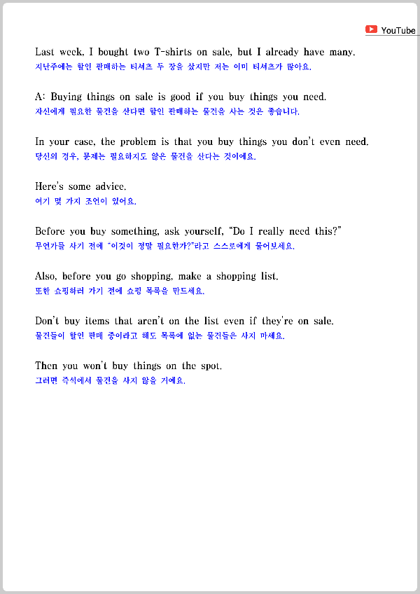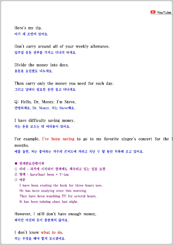 원어민이 들려주는 대화문을 듣고, 보면서 공부해 보세요. 첨부한 파일을 다운받아 활용해 보셔도 좋습니다.